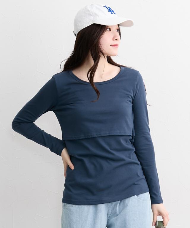 ママ 産前 産後 授乳服 授乳しやすい 丸首 長袖 無地 Tシャツ S/M/L ニッセン nissen