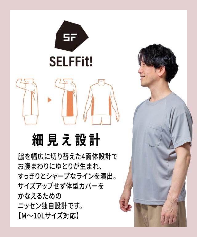 Tシャツ カットソー メンズ 立体設計 スッキリ見え 吸汗速乾 メッシュ 半袖 消臭テープ付 夏 3L〜10L
