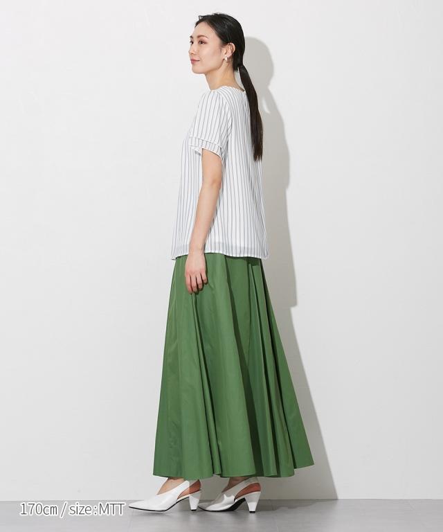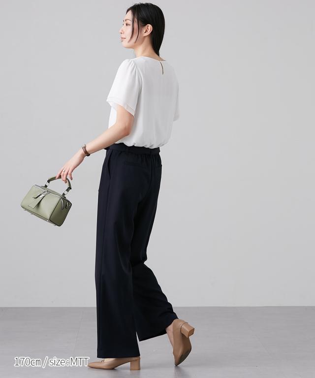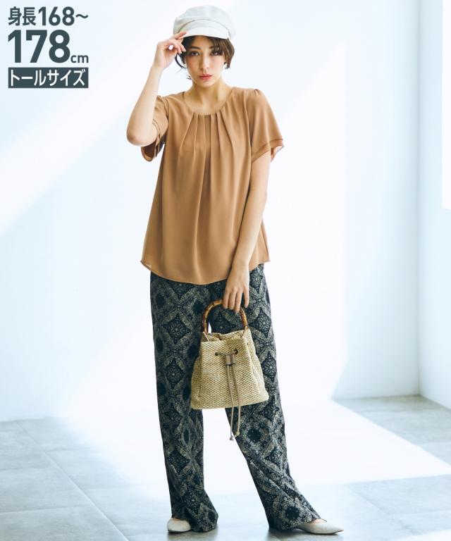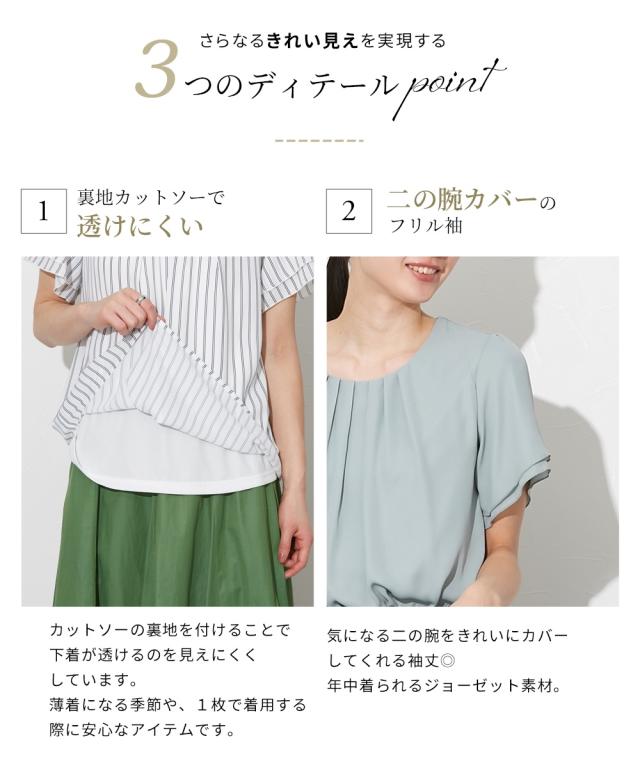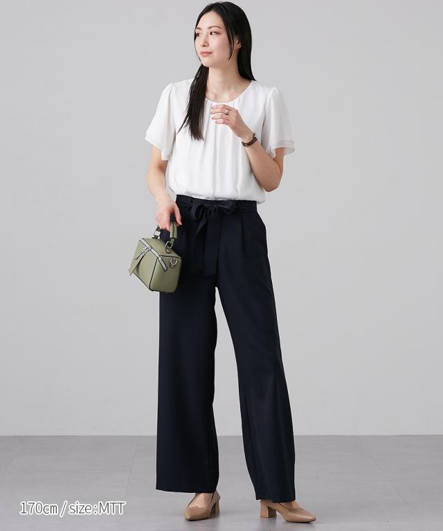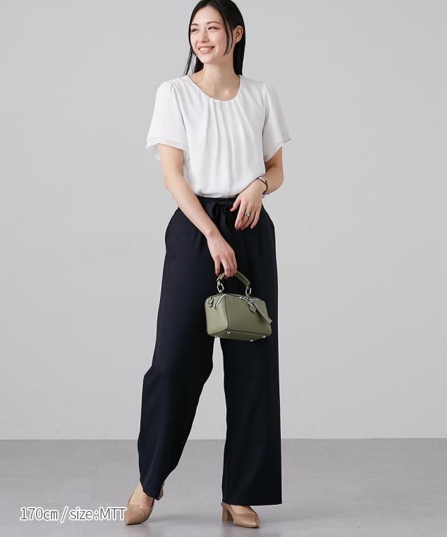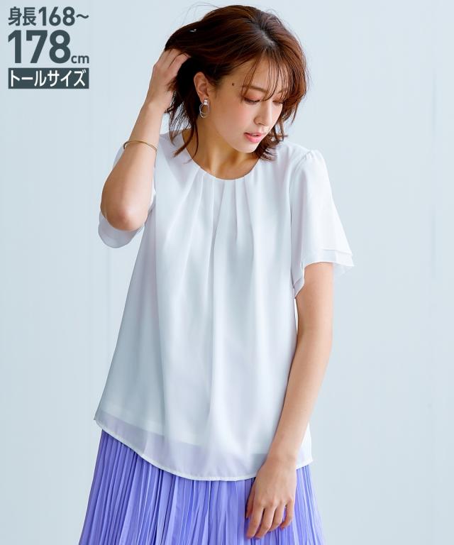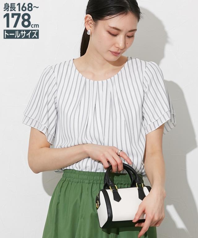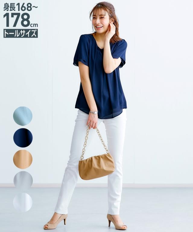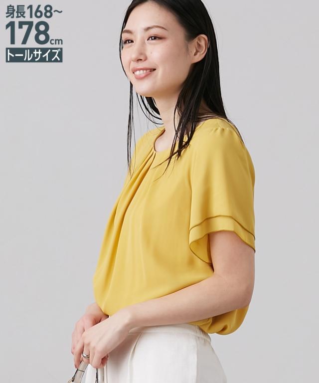 【高身長な方向け】程よいヒラっと感が女性らしい、これから夏に向けて活躍間違いなしのきれいめブラウス。きれいめ合わせだけでなく、カジュアルボトムと合わせていただく今っぽい着合わせもおすすめです。通勤やオフィスカジュアル、普段のお出かけに。活躍の幅の広いおすすめアイテムです。