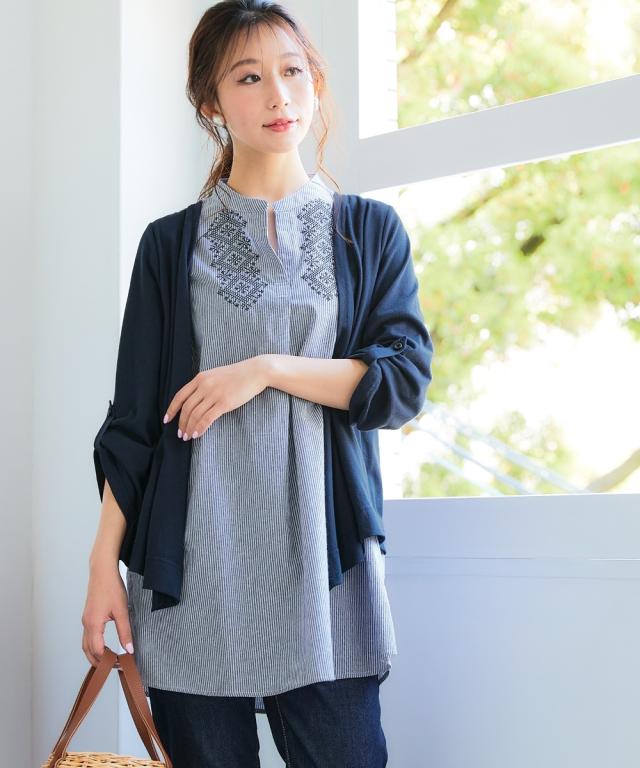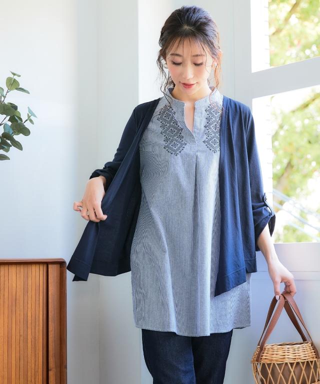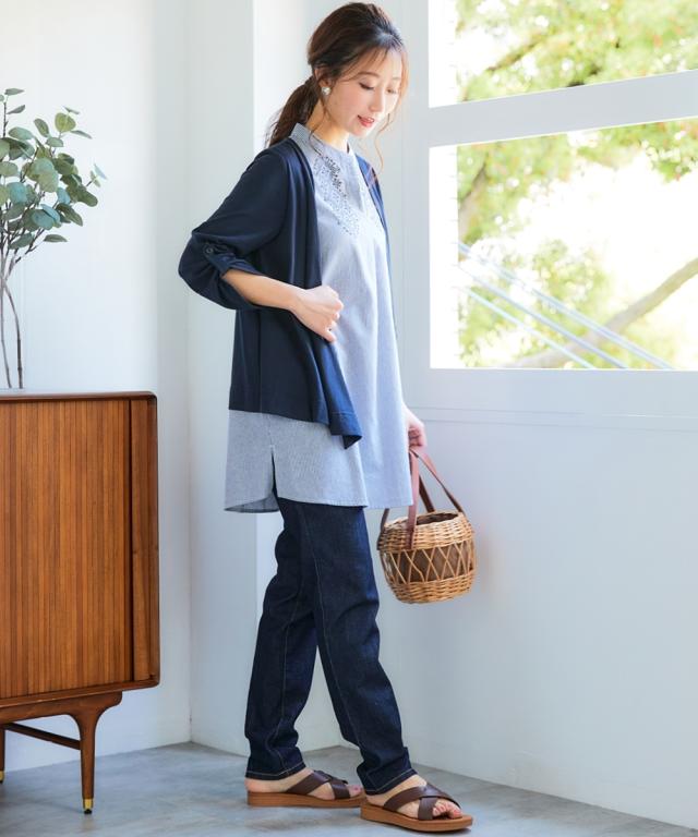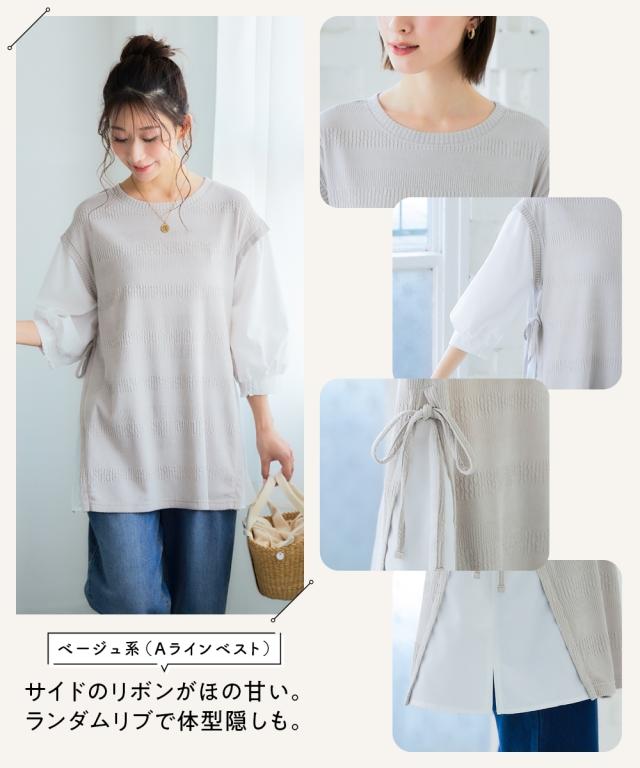 品質=【スキッパー】本体:ポリエステル65%・綿35% (カットソー 天竺) リブ部:ポリエステル72%・レーヨン20%・ポリウレタン5% 【Aラインベスト】本体:ポリエステル97%・ポリウレタン3% (カットソー ランダムジャガード) 別布部:ポリエステル90%・綿10% (織物) 【衿元ステッチ刺しゅう】本体:ポリエステル65%・綿35% (カットソー 天竺) 別布部:綿100% (織物) 刺しゅう糸:ポリエステル100% 【衿刺しゅう】本体:ポリエステル65%・レーヨン35 原産国:中国製 備考:※単位:cm※商品サイズは、仕上がりサイズです。※サイズの誤差は多少発生します。ご了承ください。