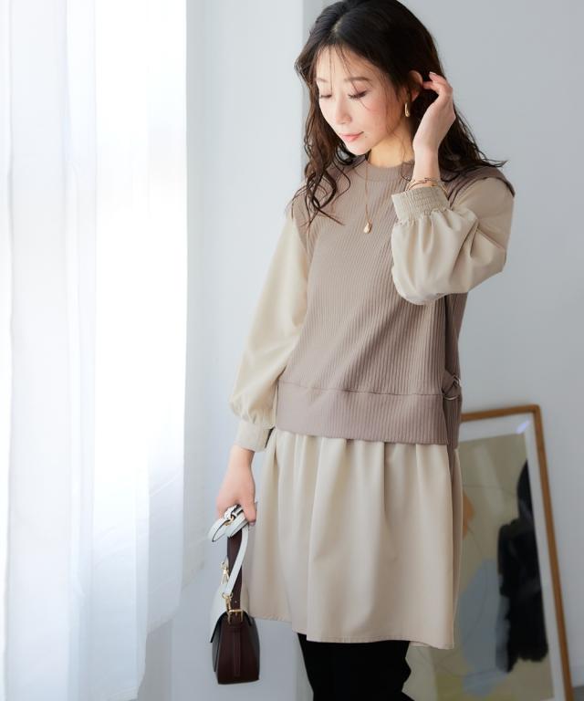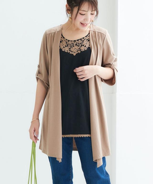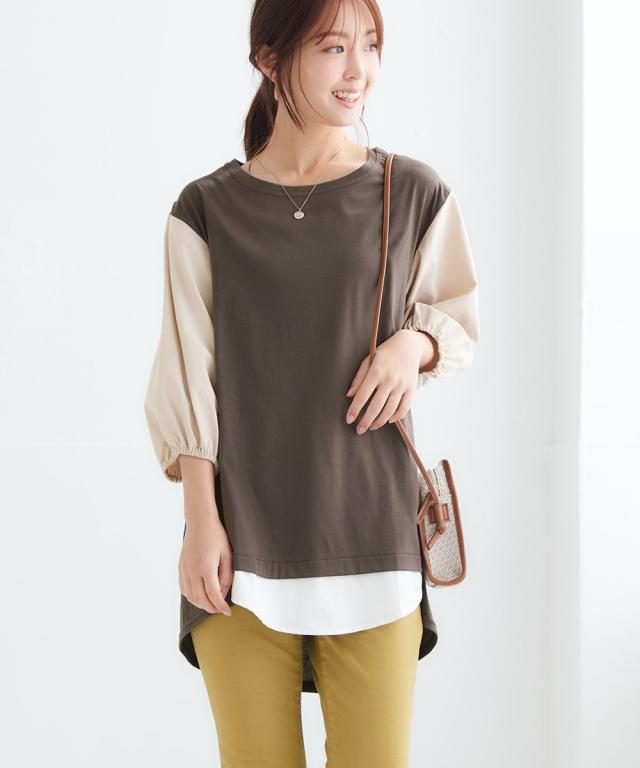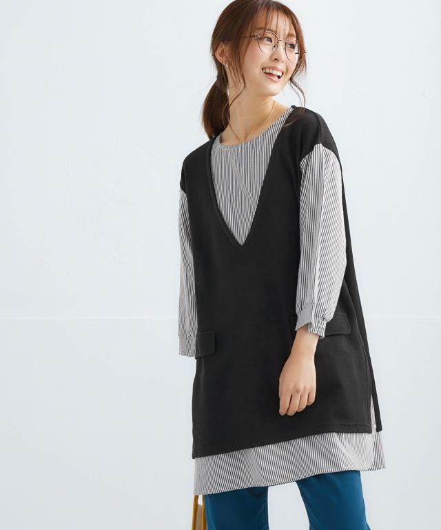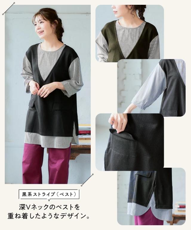 チュニック 大きいサイズ レディース 重ね着風 カットソー 体型 カバー も 3L/4L ニッセン nissen
