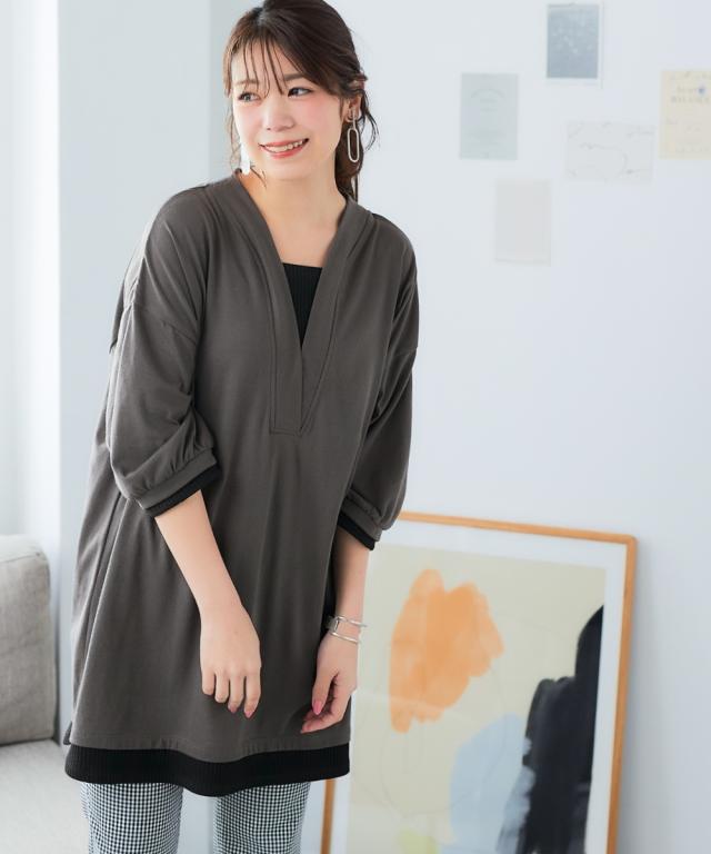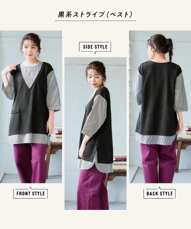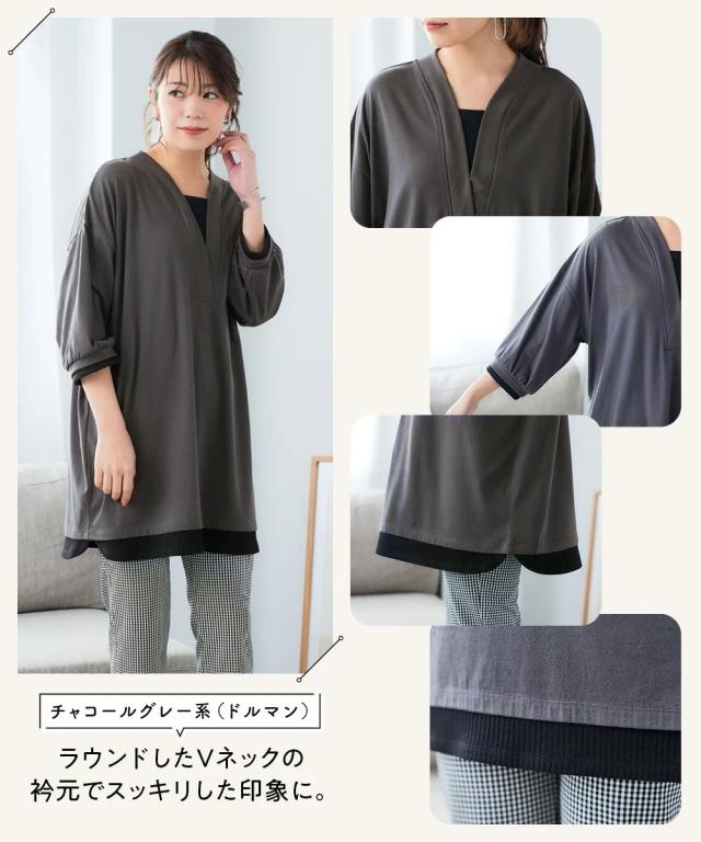 チュニック 大きいサイズ レディース 重ね着風 カットソー 体型 カバー も 3L/4L