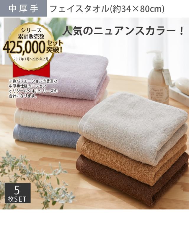 【肌ざわりのいい中厚手】フェイスタオル5枚セット(デイリーシリーズ)