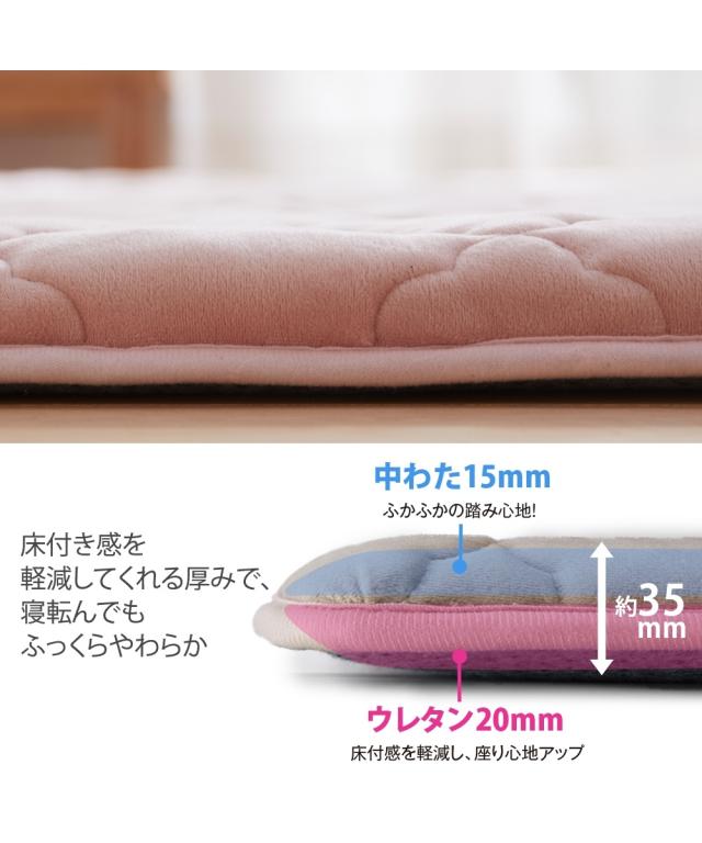 品質:表面=ポリエステル95%・ポリウレタン5%、中材=上層:ポリエステル100%、下層:ウレタンフォーム、裏面=不織布(滑りにくい加工付)<お手入れ方法>カーペットクリーナー、または、家庭用中性洗剤を希釈して汚れを拭き取るようにしてください。 原産国:中国製 洗濯表示:洗濯不可