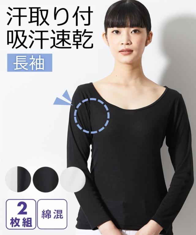吸汗速乾 綿混汗取り付長袖インナー2枚組
