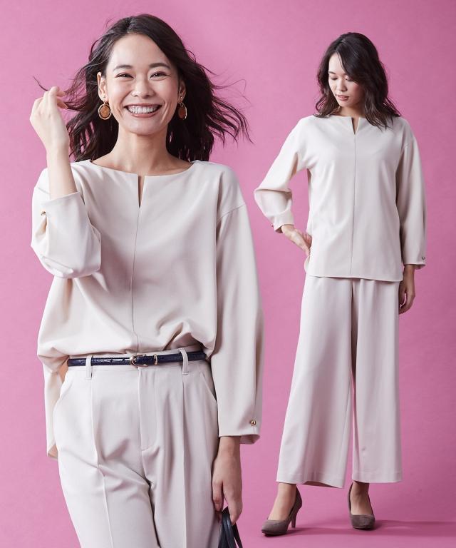 【レディーススーツ】セットアップ対応ブラウス(上下別売・すごく伸びる多機能変り織リスピィシリーズ)