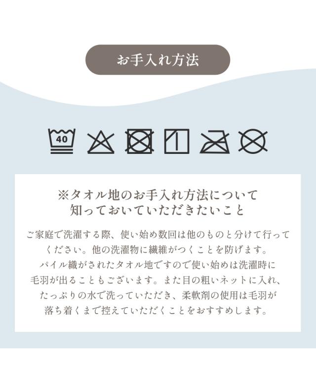 ●品質:パイル部=綿100%、グランド部=ポリエステル100%●全周ゴム入 ※素材の特性上、ご使用中の摩擦により、毛羽立ち、毛玉が発生し、他のものに付着することがあります。 ※サイズにより接ぎのつなぎ目が入りますので、ご了承ください。中国製洗濯機OK ネット使用