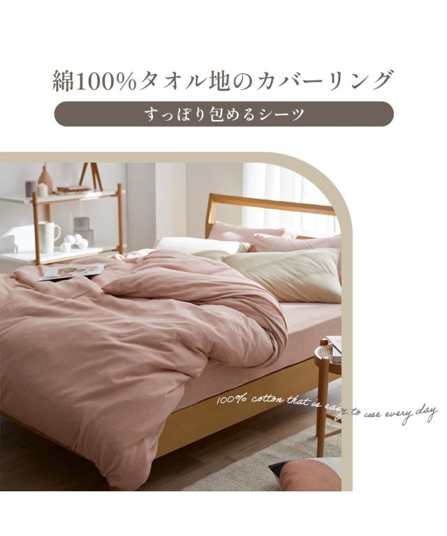 タオル地が好き!というあなたに、お勧めのシーツです。パイル部分は綿100%でとても気持ちが良く、多色展開なので、好きな色がきっと見つかるはず!タオル地素材は年中快適に使用できる寝具としておススメの素材です。