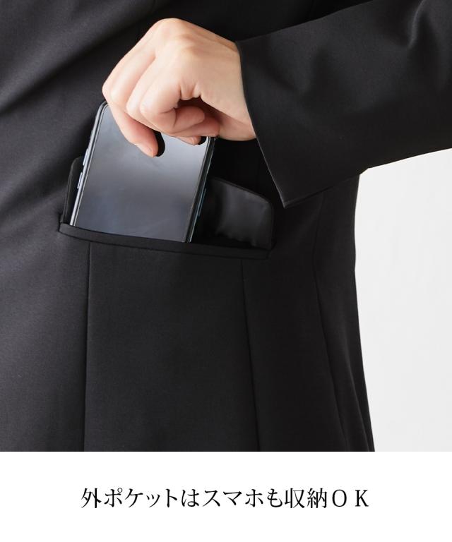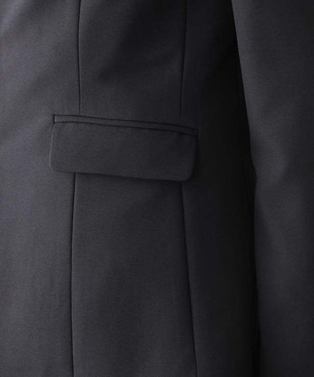 品質=ポリエステル95%・ポリウレタン5% 【ジャケット】[裏地]有(背抜き) 前カギホック開き 袖口スリット ポケット前2つ・内ポケット 肩パッド付 5面体設計で、より無理なく身体にフィットするよう工夫をしています。【パンツ】[裏地]無 前ホック・ファスナー開き内ボタン付 ウエスト後ゴム入 ポケット前2つ・後飾りポケット ※この商品は2点同サイズのみで販売します。 原産国:中国製 洗濯表示:洗濯機OK ネット使用