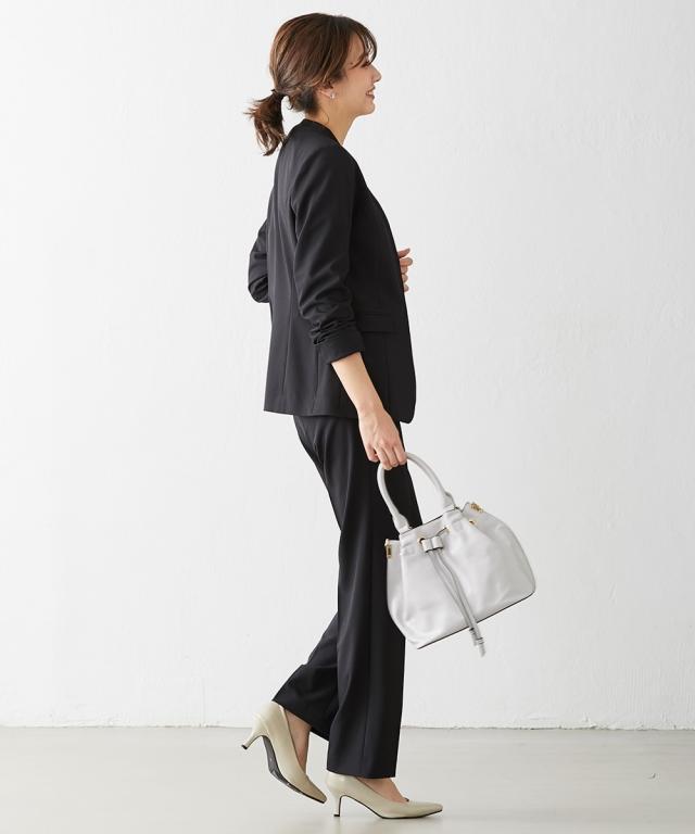 トールサイズ 洗えるタテヨコストレッチノーカラーパンツスーツ(リスピィ素材使用)