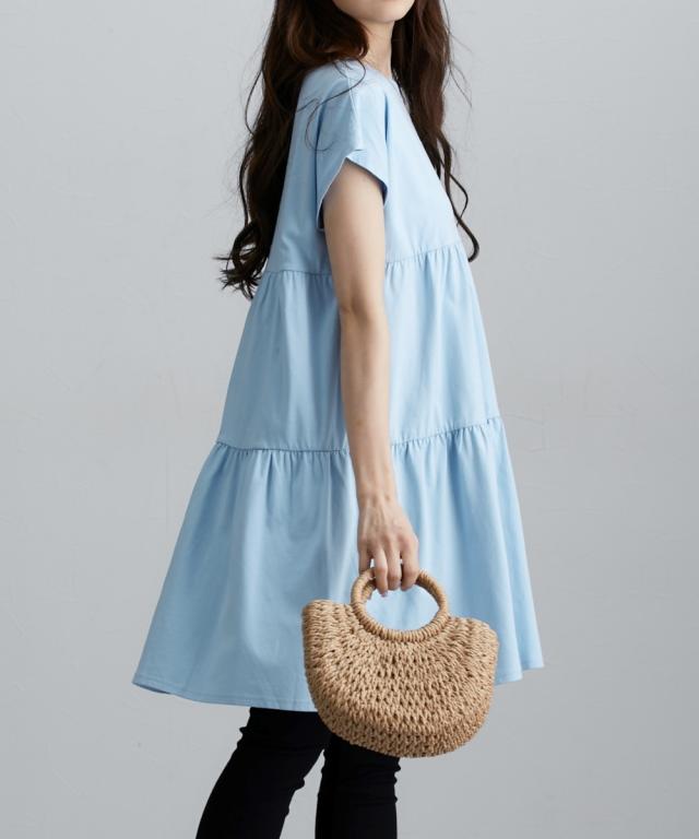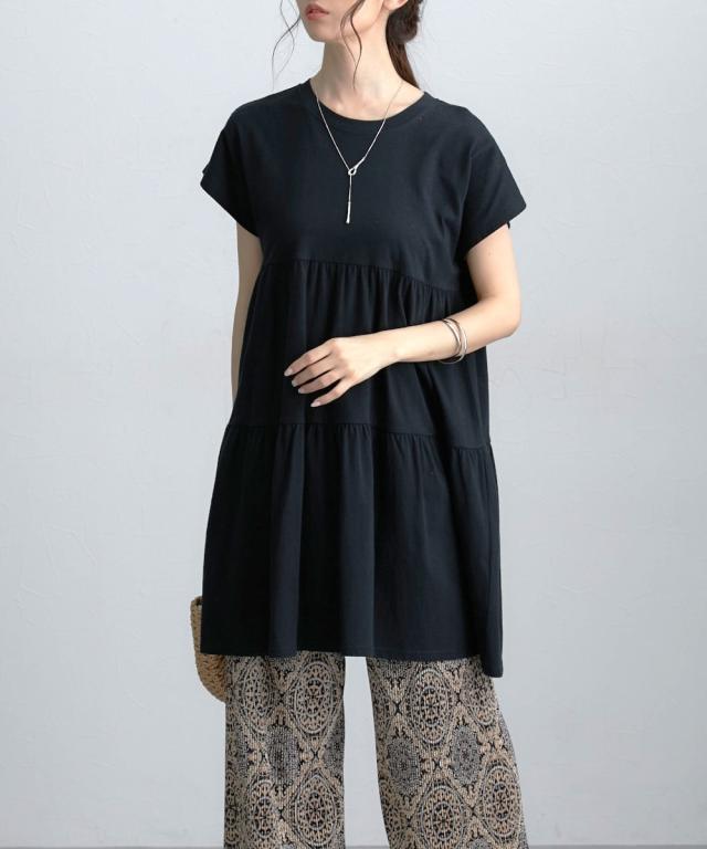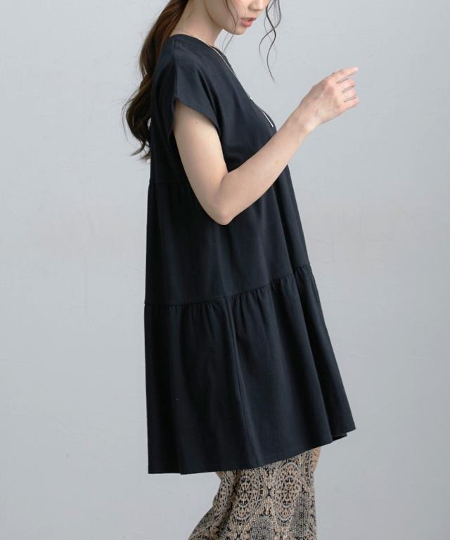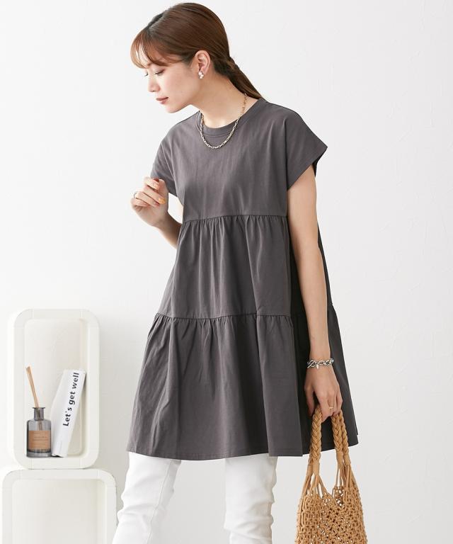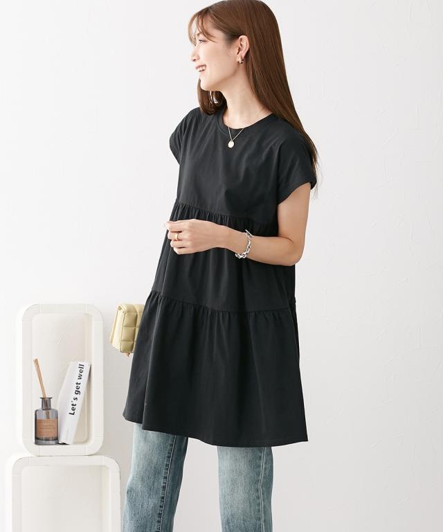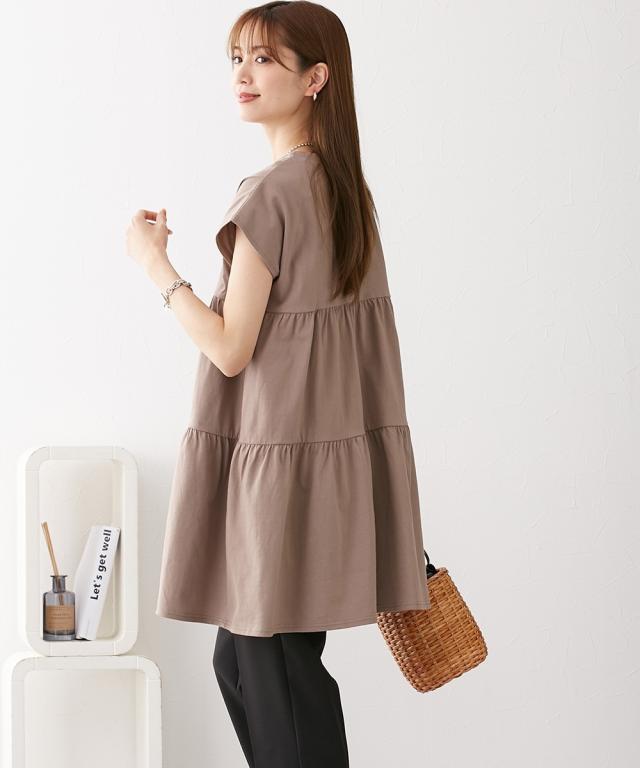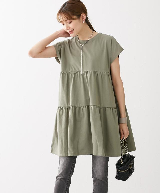 トップス チュニック 綿100%フレンチスリーブティアードトップス