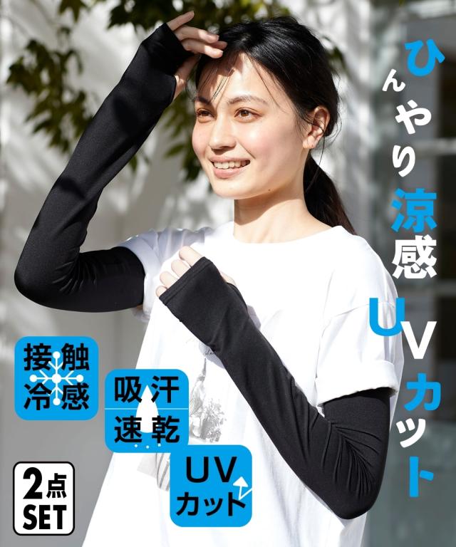 大きいサイズ アームカバー2組セット(UVカット・接触冷感・吸汗速乾)