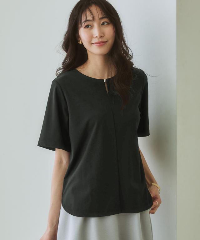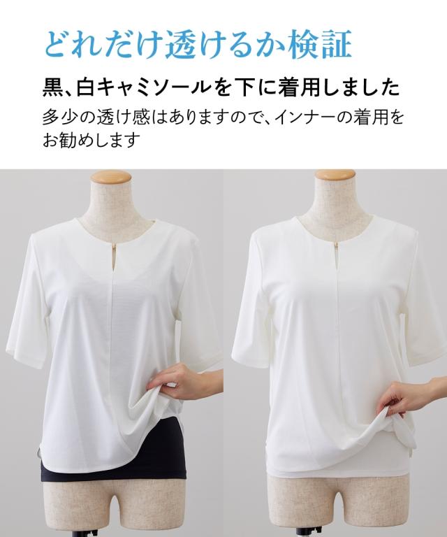 トップス チュニック ひんやり接触冷感 シルケット加工金具付カットソートップス