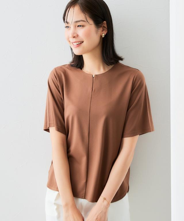トップス チュニック ひんやり接触冷感 シルケット加工金具付カットソートップス ニッセン nissen