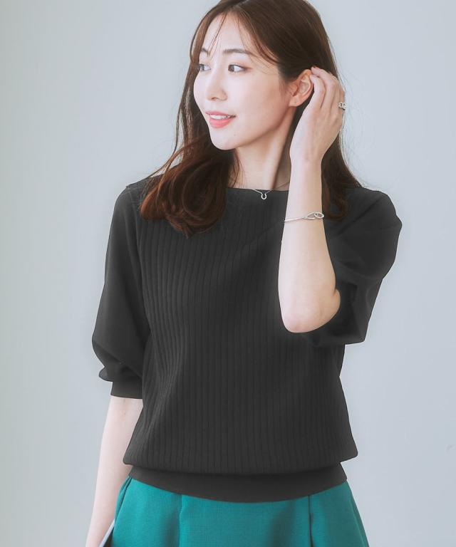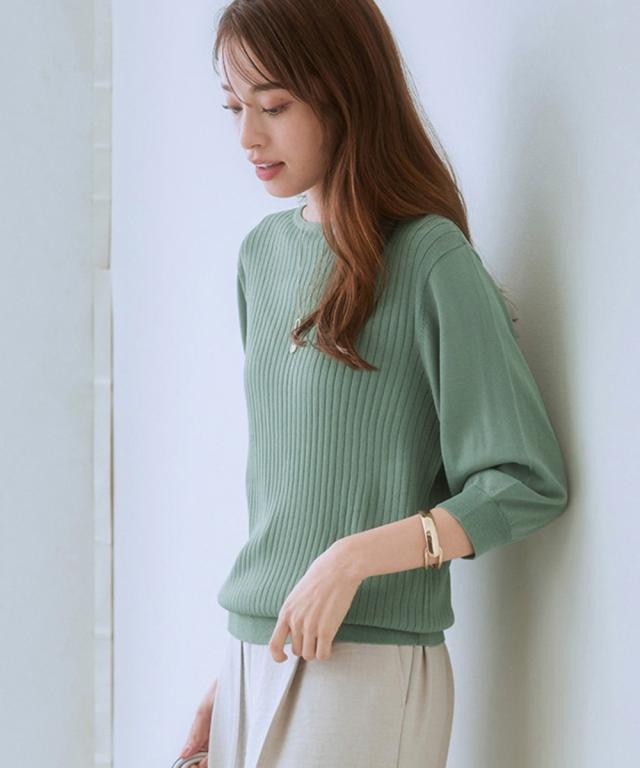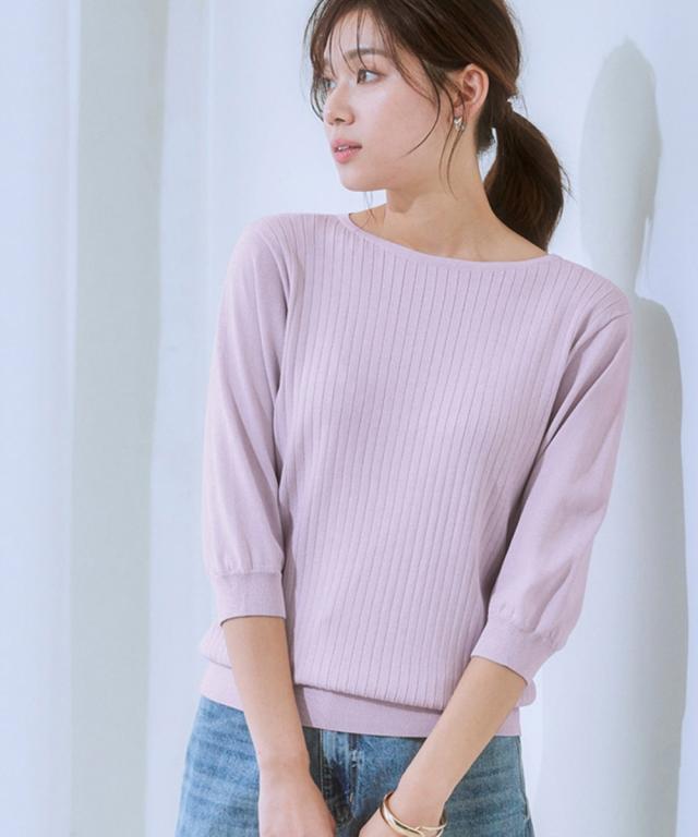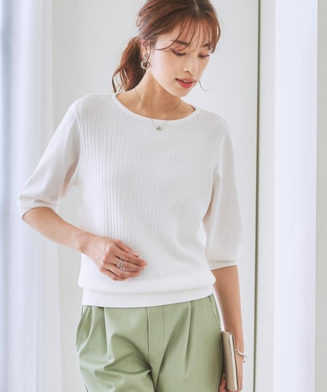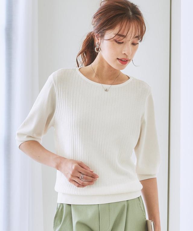 ニット セーター レディース ひんやり 接触冷感 パフ袖 ボートネック リブ UVカット 毛玉防止 夏 S/M/L/LL ニッセン nissen