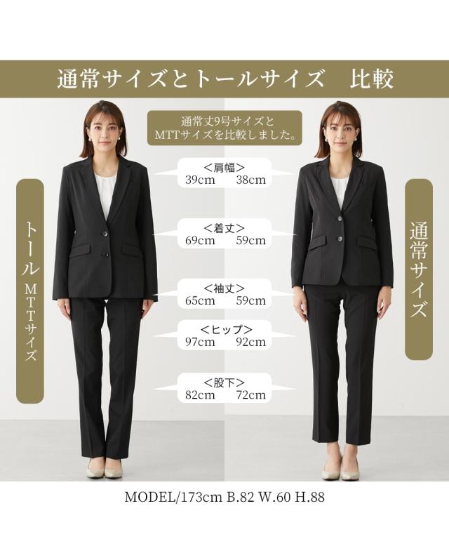 [keyword] レディースファッション 大きいサイズ レディース トールサイズ ゆったりサイズ プラスサイズ 長袖 おしゃれ 防しわ アイロン おでかけ 洗濯機洗いOK 洗濯 UVカット 夏 外 イベント 肌 レジャー 吸汗速乾 乾きやすい 無地 無地調 柄 かわいい 就活 リクルート オフィス ビジネス 面接 通勤 仕事 きれいめ 2点セット まとめ買い セット オールシーズン 通年用 春 秋 冬 年中 一年間 20代 30代 40代 50代 60代 秋服 秋物 秋冬 冬服 冬物 春服 春物 シンプル スタンダード カジュアル ナチュラル オシャレ 可愛い キレイめ 大人 オトナ ベーシック 上品 高見え ロングシーズン [comment] 【高身長な方向け】高身長さんのための定番パンツスーツ!ストレッチ素材&五面体設計を採用し、着心地の良さにもこだわりました。高身長さん専用設計なので、着丈・袖丈などばっちり長め。スラッとお召いただけます。ベーシックなデザインなので、一着あると心強いアイテムです。ジャケットは裏地が背抜きのため、真冬以外の着用がおすすめです。