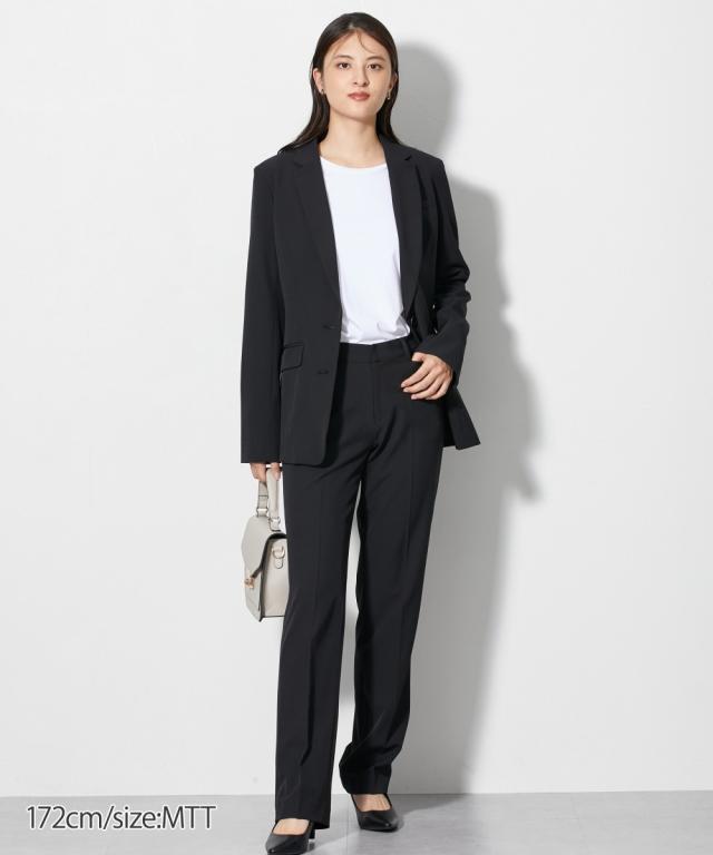 【レディーススーツ】トールサイズ 洗えるパンツスーツ(ロング丈テーラードジャケット+ストレートパンツ)(タテヨコストレッチ・リスピィ素材使用)