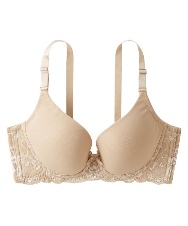 品質=ナイロン・ポリウレタン・その他もしくは ナイロン・レーヨン・その他 3/4カップ ワイヤーなし サイドボーン入り 後ホック2段3列 A〜Dカップはパッド入り(取り外し可) E・Fカップはパッドなし ※レース柄がカラーによって異なります。 原産国:中国製 備考:手洗い ※お洗濯は、必ず取り扱い表示にしたがってください。