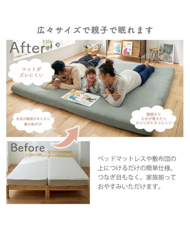 シワシワヨレヨレさようなら!グーンと伸びてピッタリフィット!ファミリーサイズのタオル地シーツ。ふっくらタオル地素材ののびのびシーツが登場!ベッドマットレスにも、敷布団、敷布団タイプのマットレスにもピッタリ!パイル部は綿100%なので、優しく吸水性が良いのも