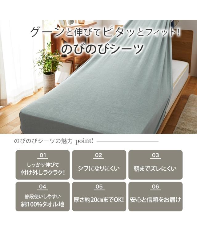 綿100%タオル地のびのびシーツ(マットレス・敷布団兼用)(Coco.Fa)ファミリーサイズ