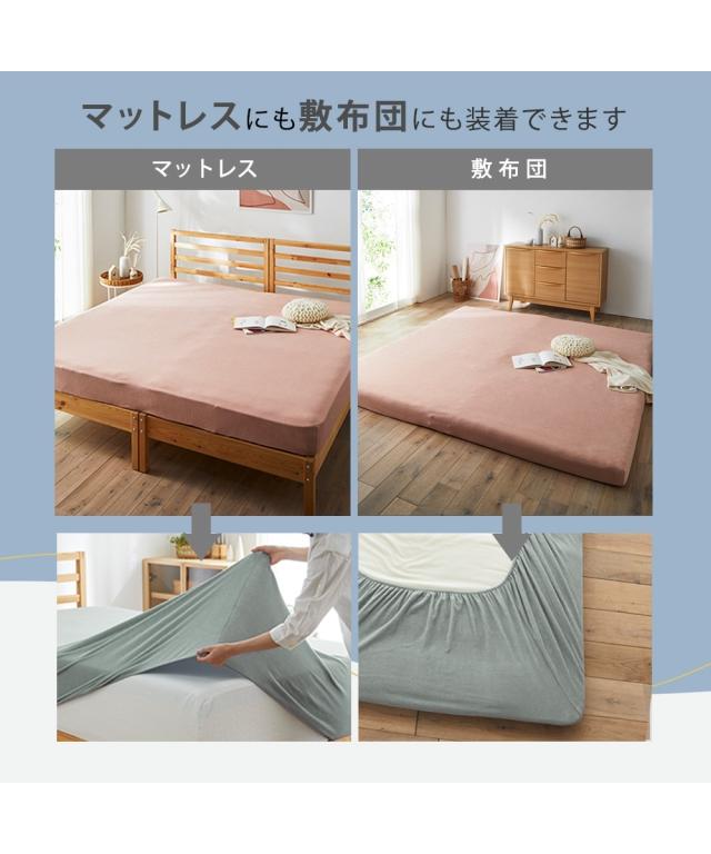 シーツ 綿100% タオル 地のびのび マットレス 敷 布団 兼用 Coco.Fa ファミリーサイズ グレイッシュブルー/ダルピンク/ラテベージュ 4人用対応 ニッセン nissen