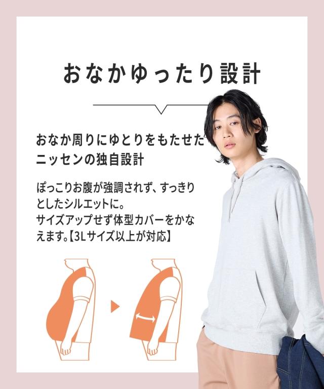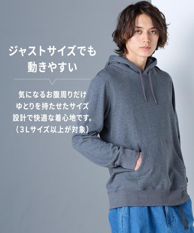 綿100%スウェットプルパーカー【3L以上お腹ゆったり】