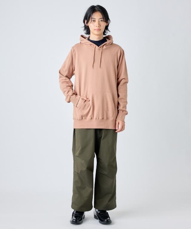 綿100%の裏毛素材のプルパーカーはロングシ