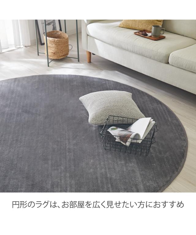 きめ細かく、柔らかなマイクロファイバーを使用した、豊富な10色2サイズのカラーラグです。やわらかな肌触りが最大の特徴です。円形ラグはお部屋を広く見せ、優しい印象にしてくれます。薄手タイプのこのラグは、お掃除のときの移動や敷き替えのときもラクラク!汚れても、洗濯機で洗えるのはうれしいポイントです。裏面には滑りにくい加工を施しているので、ズレにくく、お掃除も楽々です。柔らかな肌触りをおためしください