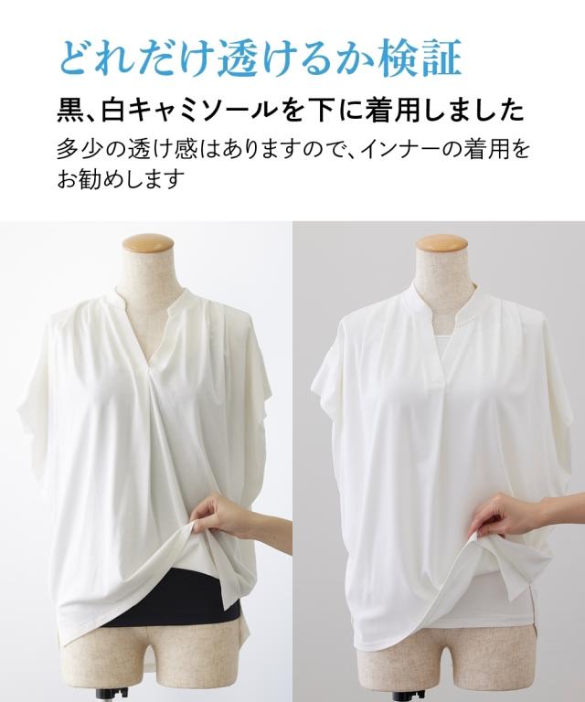 Tシャツ カットソー レディース ひんやり 接触冷感 シルケット加工フレンチスリーブキーネック トップス 脇シェード付 夏 S/M/L/LL