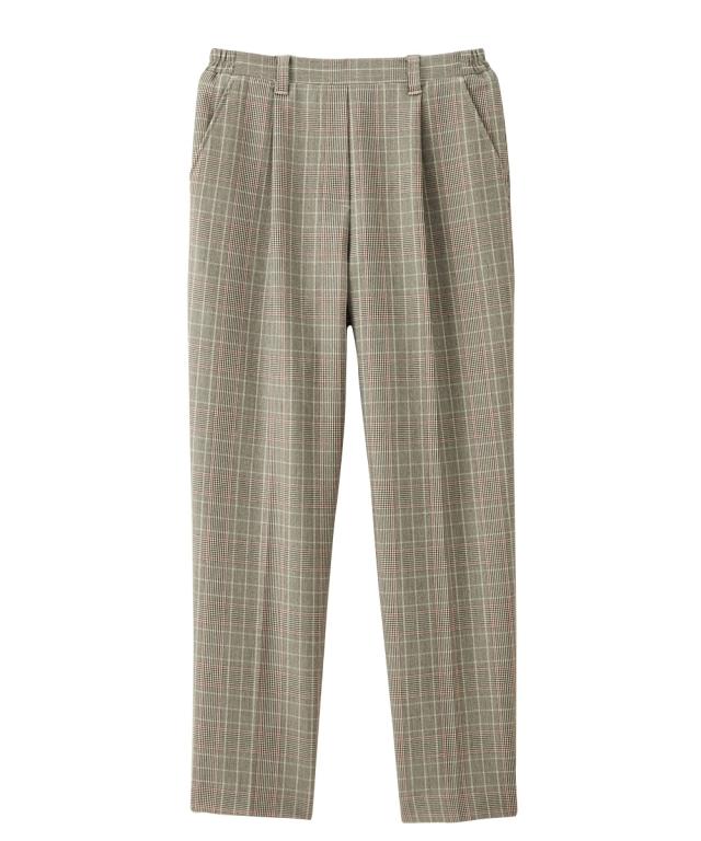 品質=【無地】ポリエステル75%・レーヨン20%・ポリウレタン5%【チェック柄】ポリエステル70%・レーヨン25%・ポリウレタン5% 透け感:透けにくい ※色によって透け感が異なる場合があります。 淡色カラーはベージュインナー着用をおすすめします。 伸縮性:あり 生地の厚み:普通 光沢感:なし 裏地:なし ポケット:両サイドポケット・後ろポケットフェイク ウエスト:ウエスト後ろゴム 季節:オールシーズン シルエット:普通 原産国:中国製 洗濯表示:洗濯機OK(ネット使用)