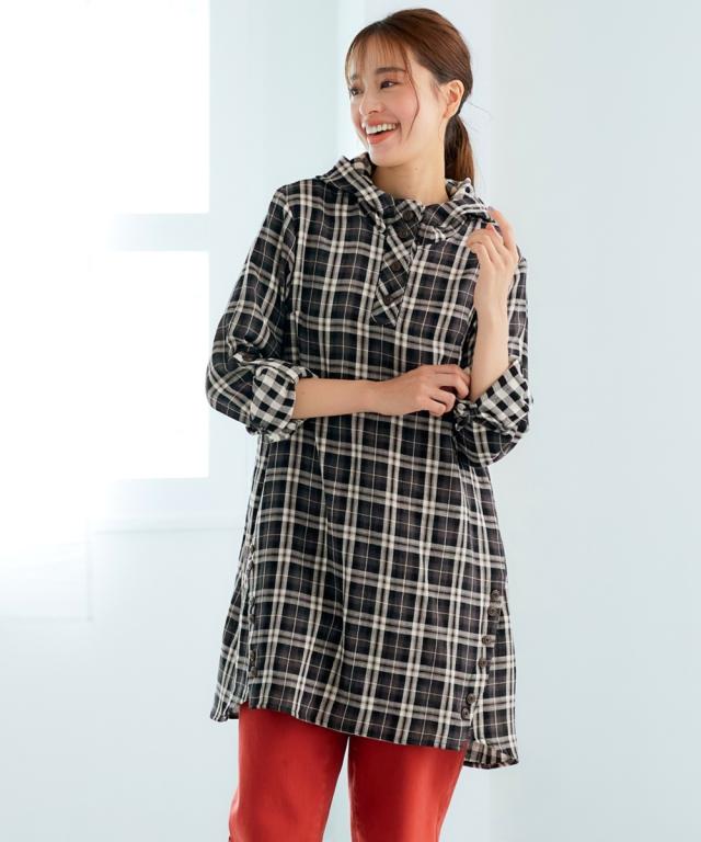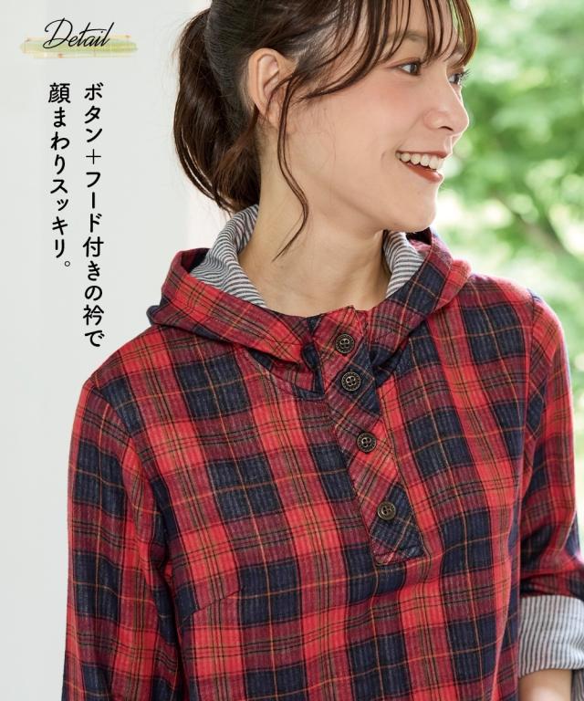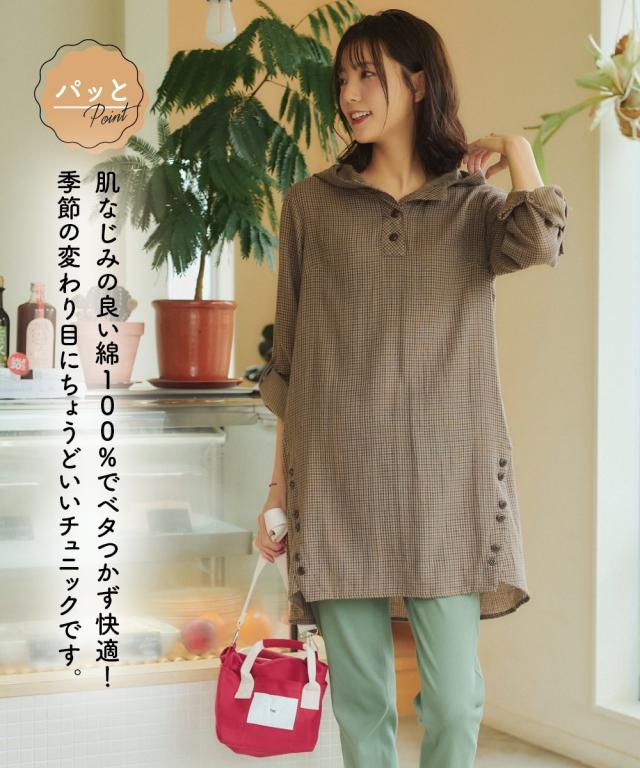 チュニック 大きいサイズ レディース 綿100% 肌触り爽かダブルガーゼフード付 ブラウス L/LL/3L/4L/5L ニッセン nissen