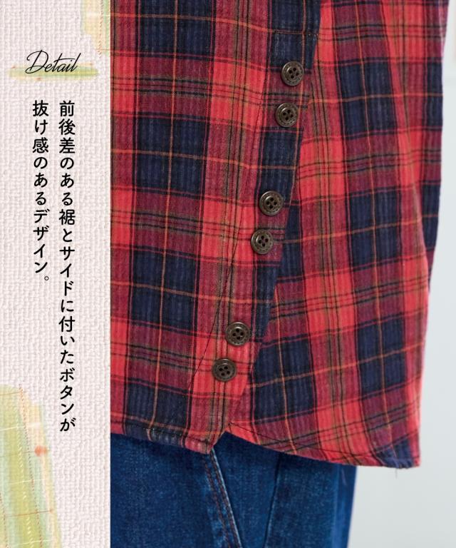 品質=綿100% 前・袖口ボタン開き ポケット無 袖はボタンでロールアップできます。 両脇ボタンは飾りです。 柄の出方が多少異なる場合があります。 透け感:ややあり 伸縮性:なし 生地の厚み:普通 光沢感:なし 季節:春・夏・秋向き シルエット:普通 原産国:中国製 洗濯表示:洗濯機OK ネット使用