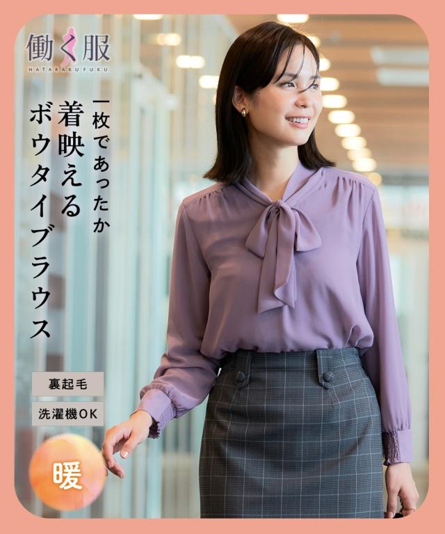 着た瞬間ひやっとしない裏起毛ブラウスから、ジャケットインにも映えるボウタイデザインが登場 ■デザイン ・ジャケットインに映えるボウタイデザイン・リボンを結ぶとVネックになるから顔周りもすっきり・ボウタイの下にボタンがあるから着脱もしやすい工夫も ・衿あきが広くなりすぎない仕様にしています