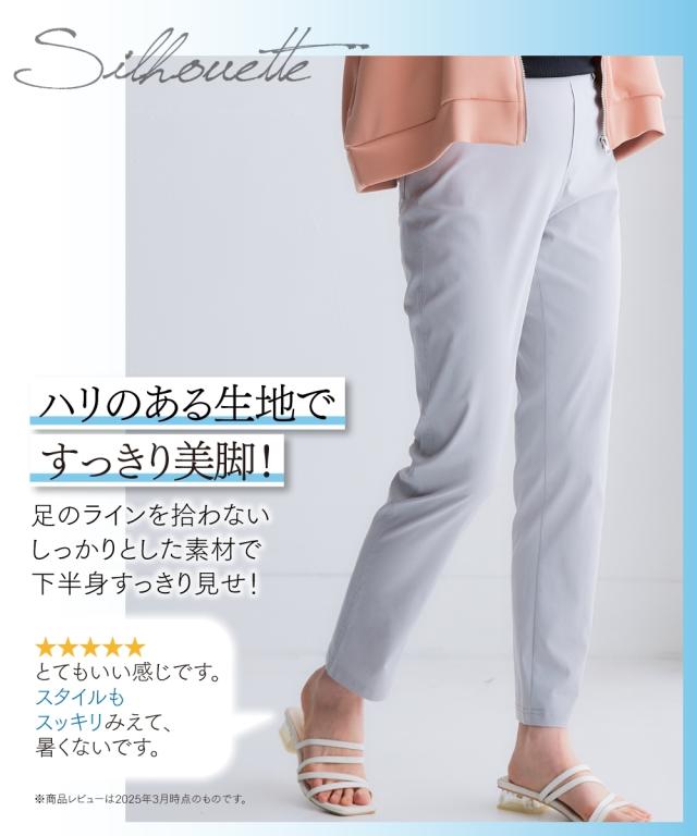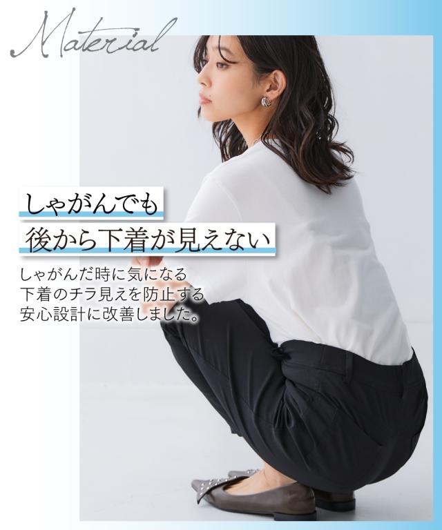 薄手でもハリ感のある素材なので脚のラインを拾いすぎずスッキリ美脚見せ!