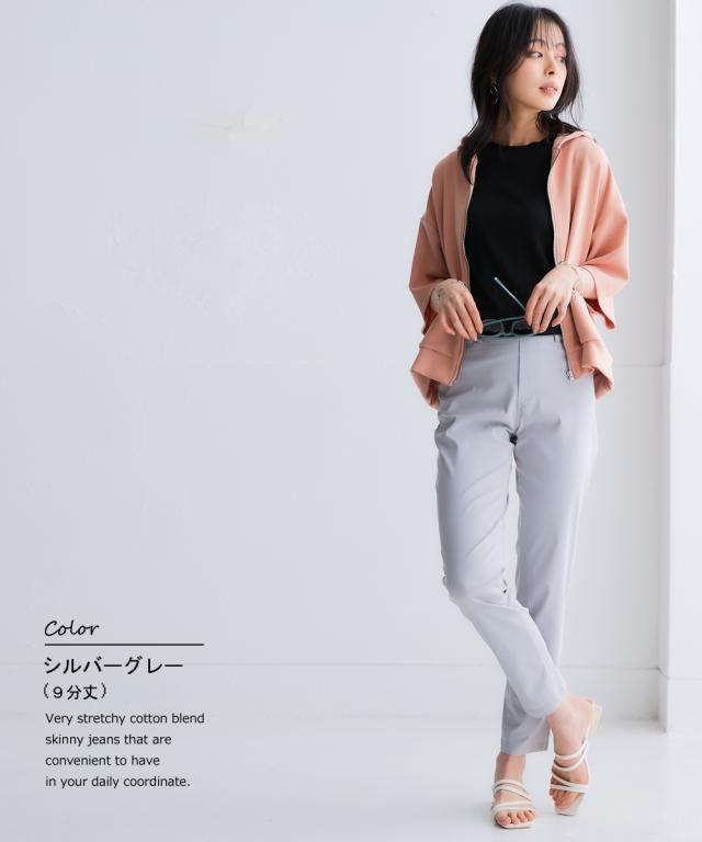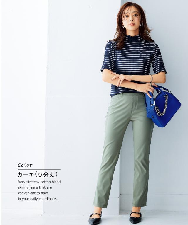 ベーシックなスキニーデザインでもハリ感のある生地なら脚のラインを拾いすぎずきれいめスタイルにもピッタリ。