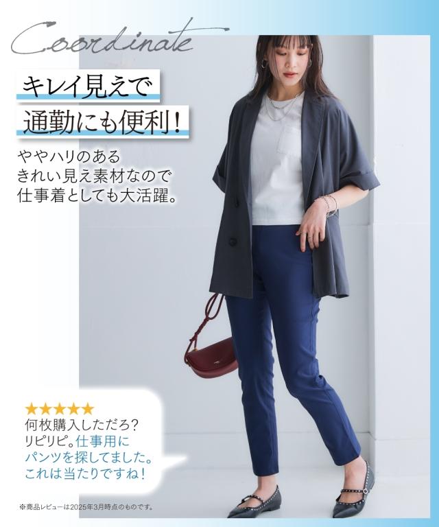 ハリ感のあるキレイ見え素材なのでオフィススタイルにも