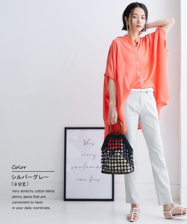 ベーシックなスキニーデザインでもハリ感のある生地なら脚のラインを拾いすぎずきれいめスタイルにもピッタリ。
