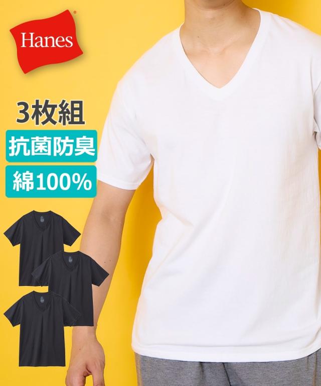 【Hanes(ヘインズ)】綿100%・抗菌防臭 V首半袖Tシャツ3枚組