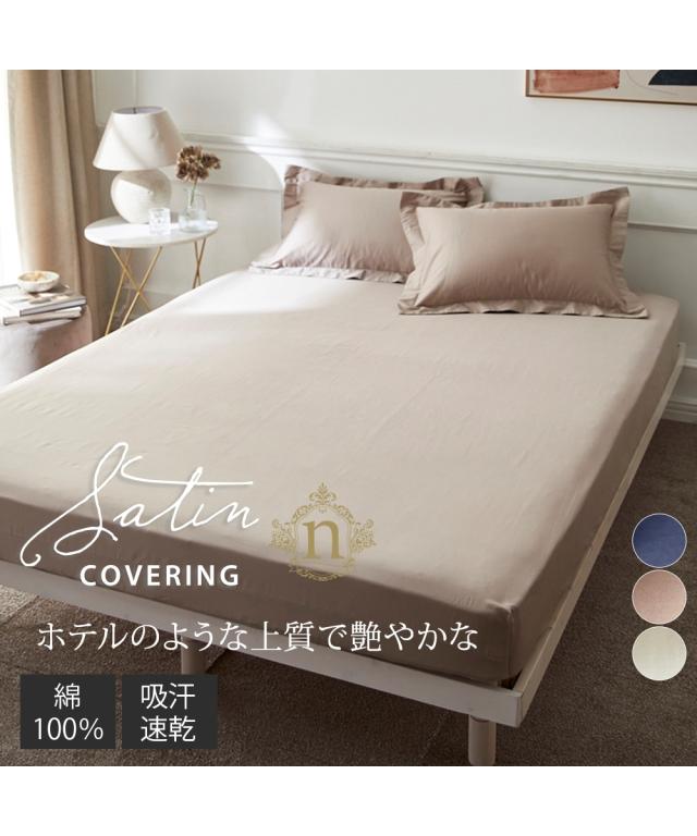 ホテルのような高級感ある綿100%光沢サテン地すっぽり包めるシーツ(マットレス・敷布団兼用)