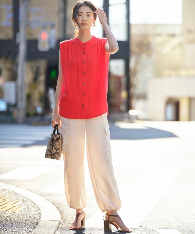 コーデに投入するだけでトレンド感を発揮するパラシュートパンツ。ほどよいボリュームと上品なつや感で、きれいめに仕上げました。
