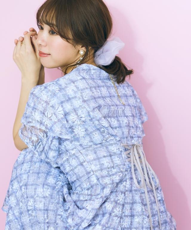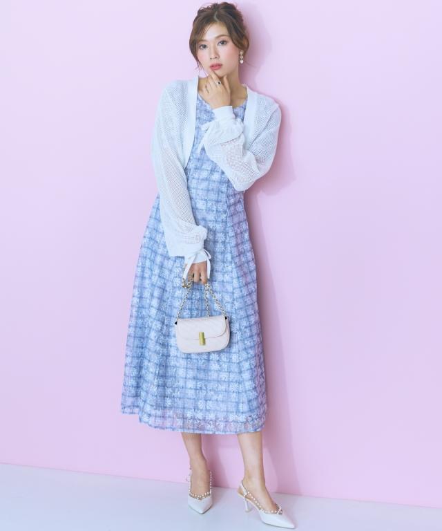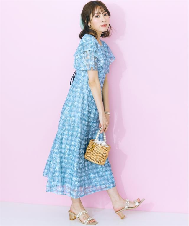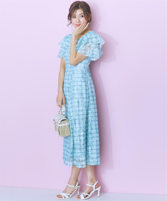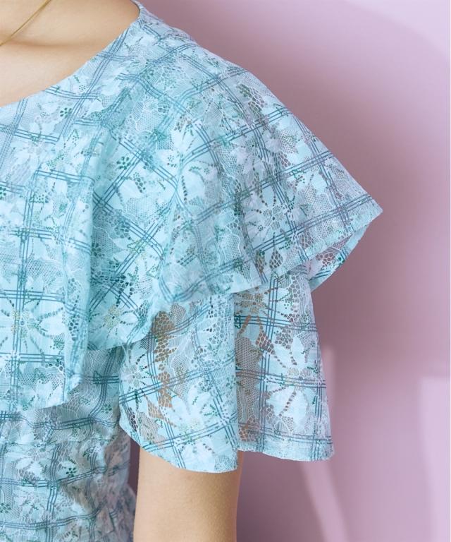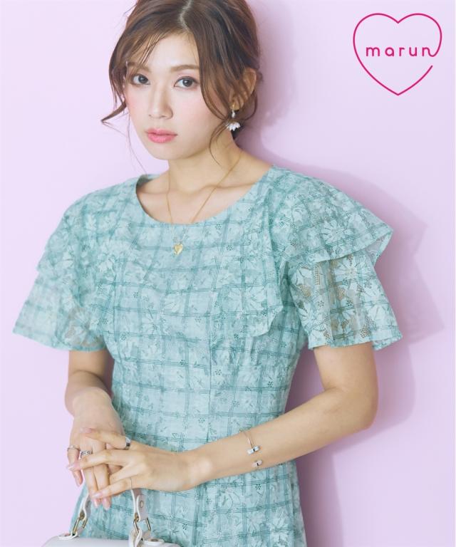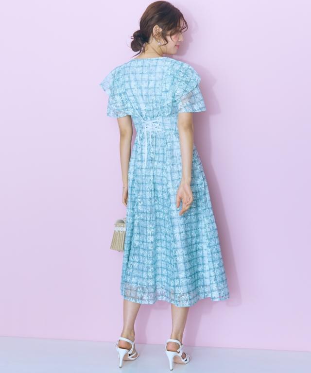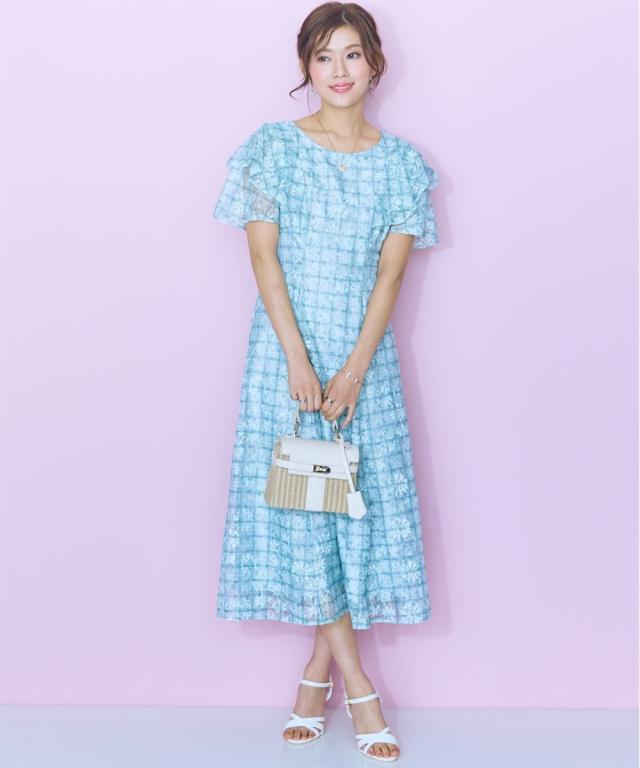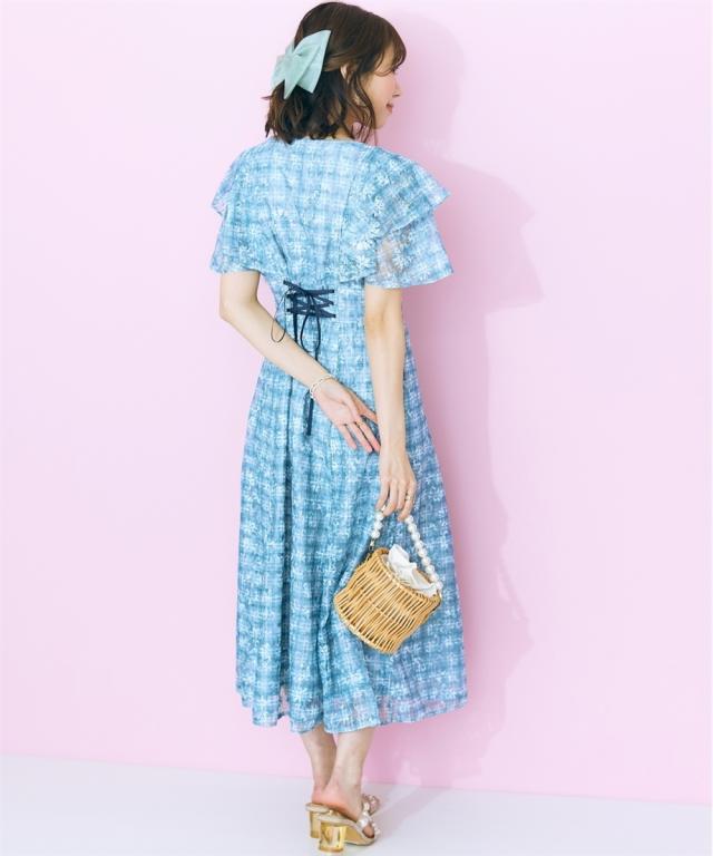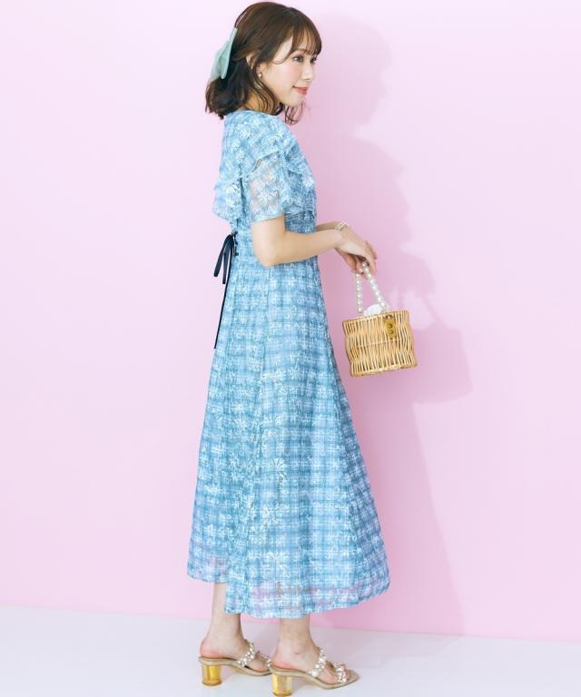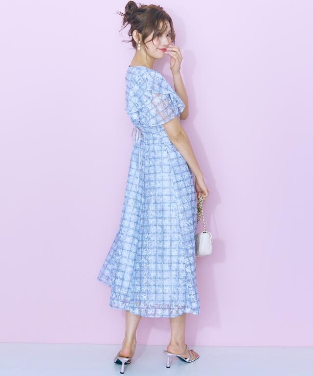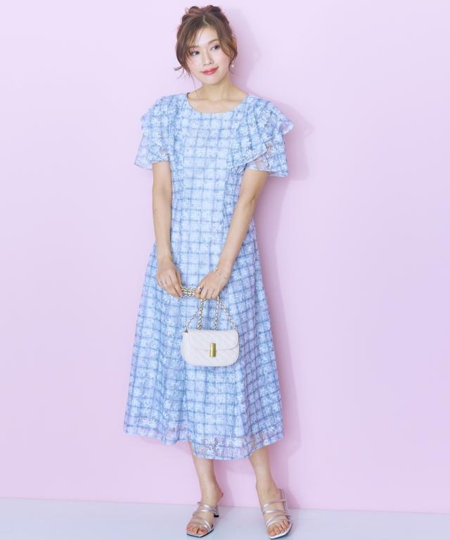 レースチェックがかわいい、フリルデザインワンピース