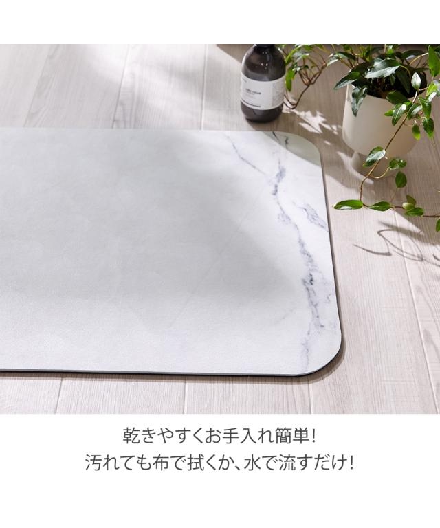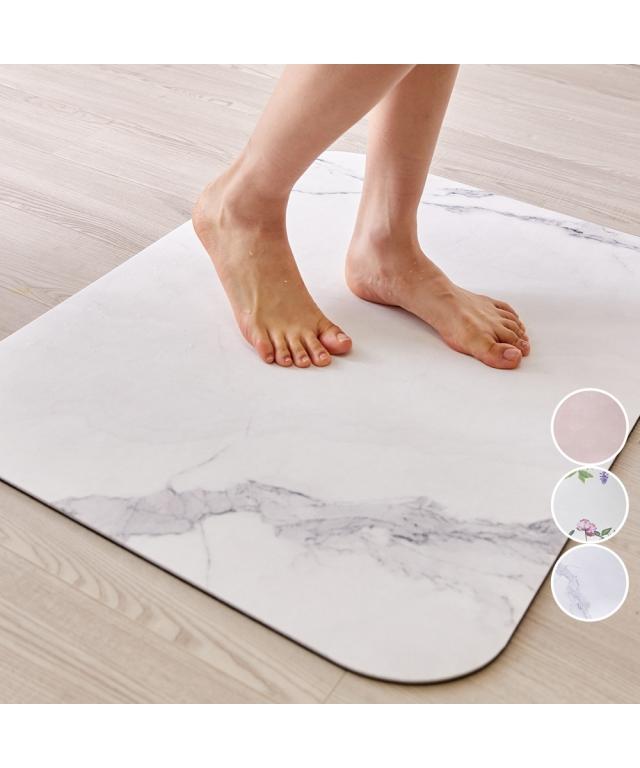 スポンジみたいな吸水力でサラッと快適。 柔らかな素材を使っているので珪藻土マットのように割れたり、欠けたりする心配もありません。