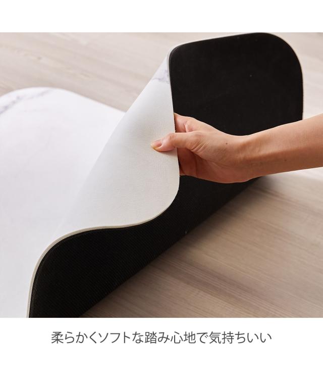 ●品質:表地=ポリウレタン、中材=ポリエステル、裏=天然ゴム ●裏面は滑りにくい加工 ●商品サイズ:(約)45×65cm 、厚み=(約)0.6cm、重量=(約)800g ※素材特有のにおいがあります。気になる場合は、風通しの良い場所で1〜2日、陰干ししてください。 ※長時間敷いたままでご使用になると、床材(特に塩ビフロア)が変色や密着することがあります。時々床面を拭いたり、取り外してご使用ください。 原産国:中国製 備考:※汚れた場合は濡れた布で優しく拭き取るか、水で薄めた中性洗剤を含ませたスポンジで洗い、水で流してください。洗浄後は、風通しの良い場所で陰干しして、完全に乾燥させてください。