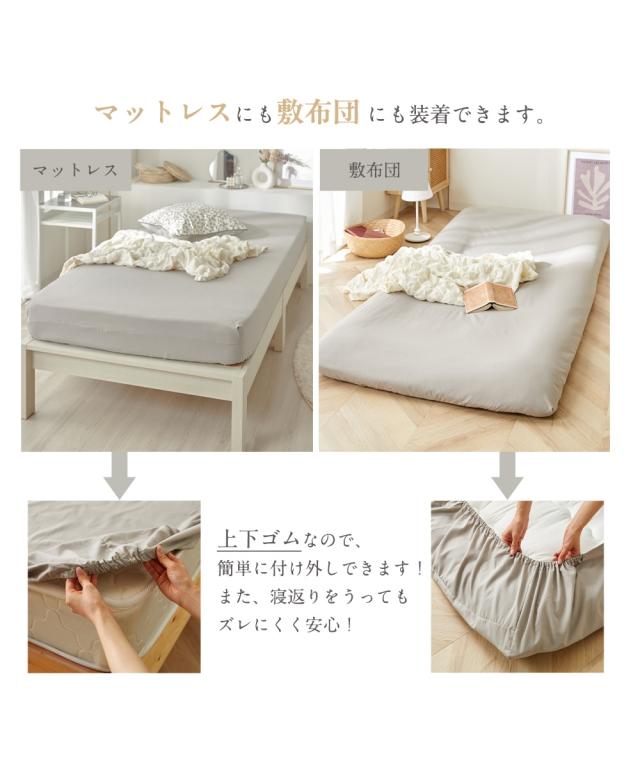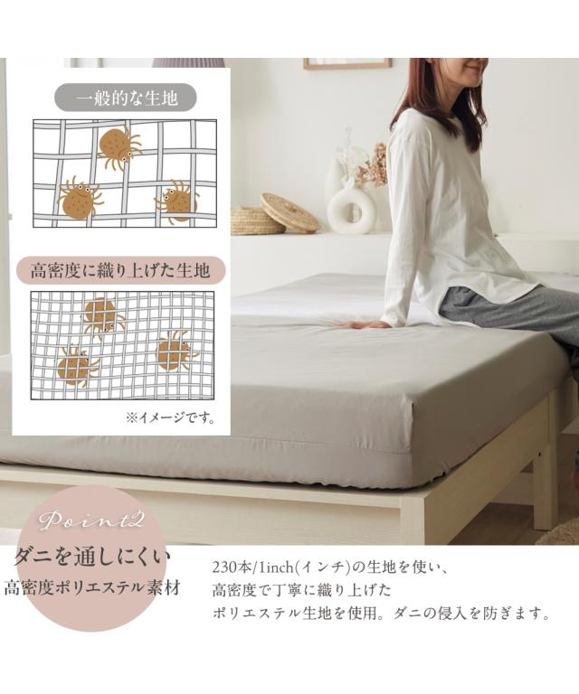 point1 桃のようななめらかな肌触り ピーチスキン加工を施しており、生地の表面に桃(ピーチ)のような短い毛羽をつくり、しっとりなめらかな肌触りに仕上げました。 point2 ダニを通しにくい高密度ポリエステル素材 230本/1inch(インチ)の生地を使い、高密度で丁寧に織り上げたポリエステル生地を採用。ダニの侵入を防ぎます。 ポリエステル100%なのでシワになりにくく、お手入れしやすくなっております。 point3 豊富なカラーと選べるリバーシブル 6色からお好きなカラーをお選びいただけます。 point4 洗濯機で洗える いつも清潔・快適に保てます。 【嬉しい機能性】 ・マットレスにも敷布団にも使える 簡単に取り外しできる全周ゴム。寝返りを打ってもずれにくく安心です。