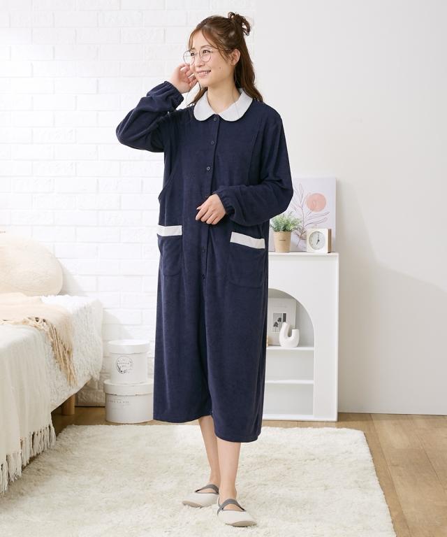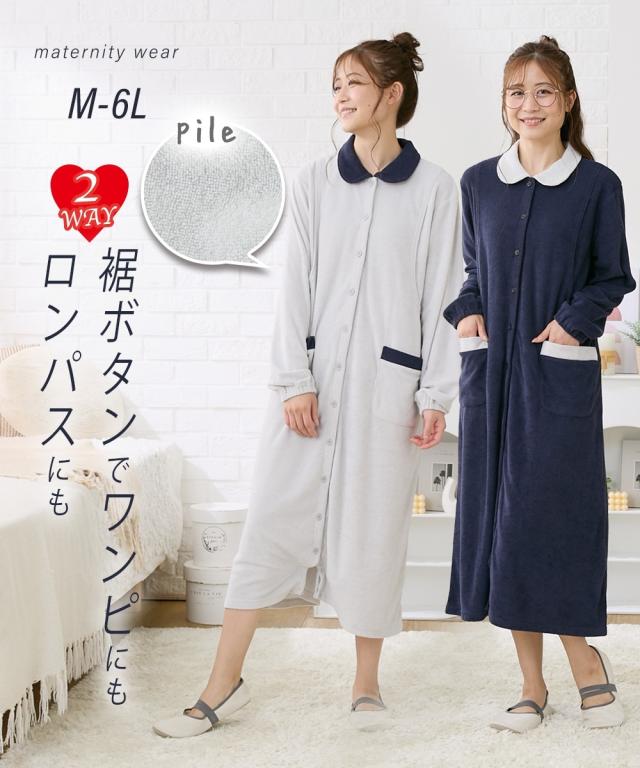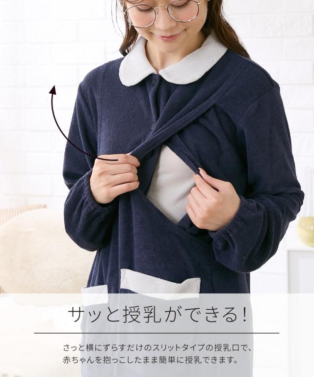 【マタニティウエア・授乳服】綿混パイル 授乳しやすいロンパスにもなるマタニティワンピースパジャマ(産前・産後)