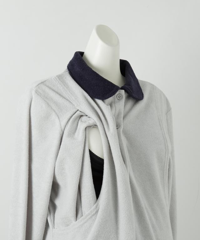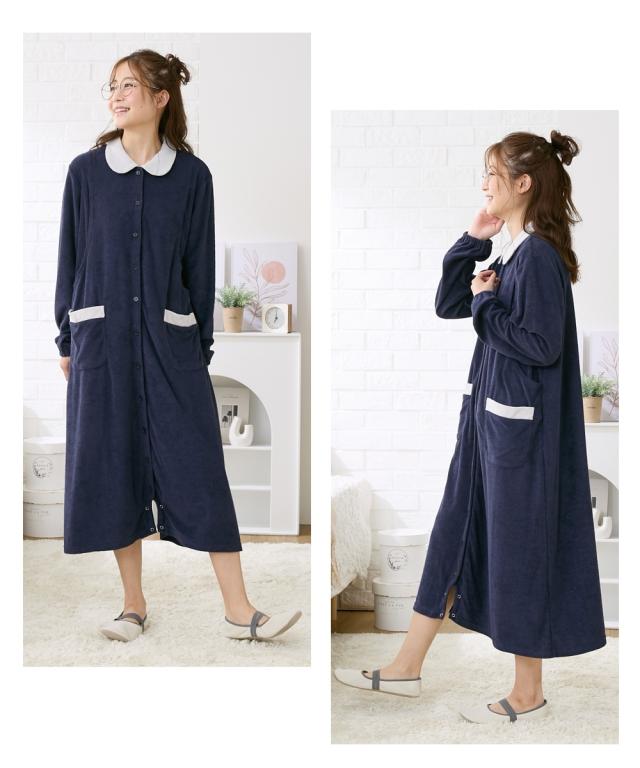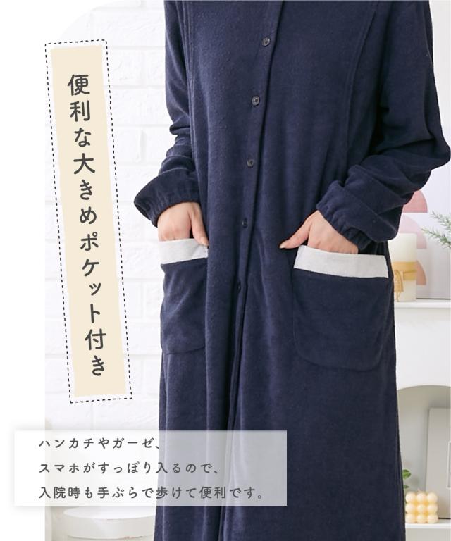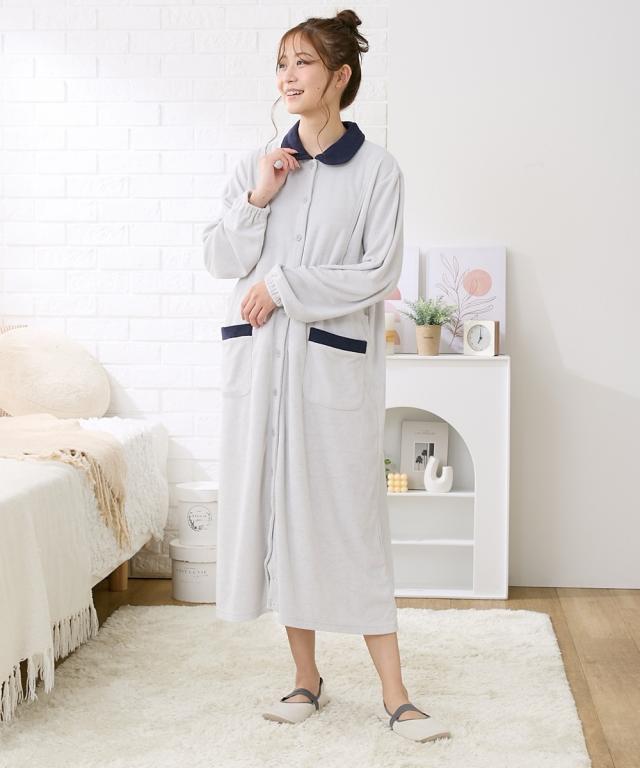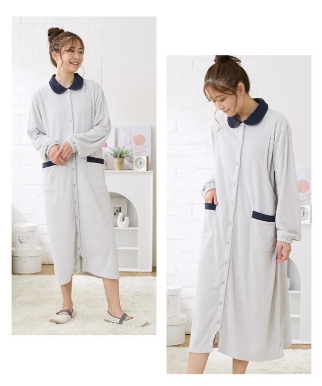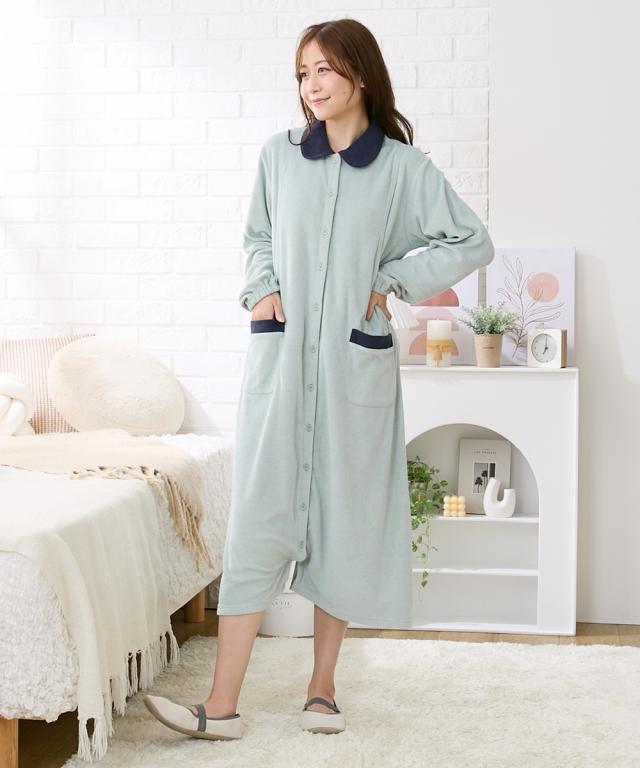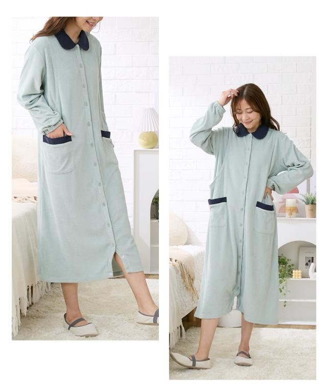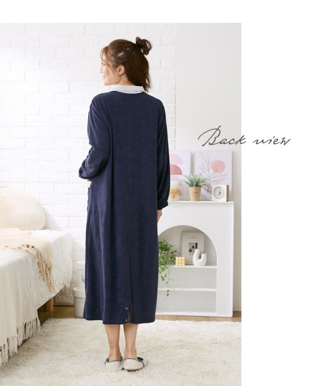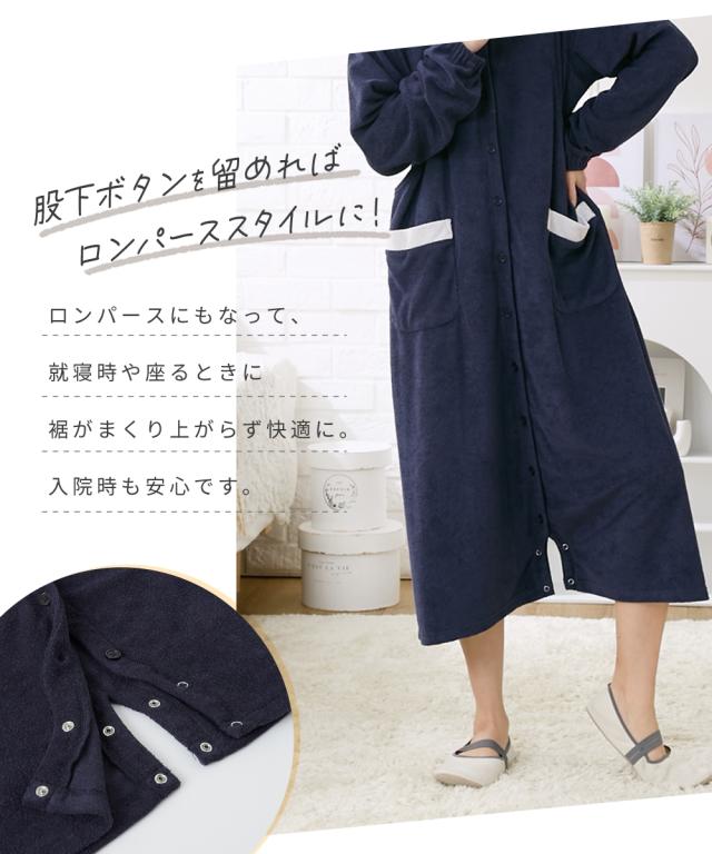 股下のスナップボタンでワンピースにもロンパスにもなるマタニティ2WAYパジャマです ■design ・股下スナップボタンの開閉でワンピースにもロンパスにもなるパジャマ ・衿とポケット口はアクセントになる配色カラー ・袖口は、まくり上げでも落ちてきにくいゴム入り ・出産準備に1枚は持っておきたい前ボタン開きのデザイン ■point ・1枚で2通りの着用スタイルが可能 お部屋でゆったりとしたい時はワンピースに、寝る時は裾がまくり上がりにくいロンパスにして着用ができます 寝たまま全開にできるので、帝王切開後の入院パジャマとしてもオススメです ・両サイドにボタンのない縦開きの授乳口があり、片手でサッと横にずらして簡単に授乳ができます ・両脇にポケットがあり、スマホやガーゼなど、ちょっとしたものを入れられて便利です ■fabric ・お風呂上りにさっと気持ちよく着られるやわらかな綿混パイル素材 ・春秋対応 ■maternity ・産前から産後に使う ・授乳機能付(縦スリット授乳)