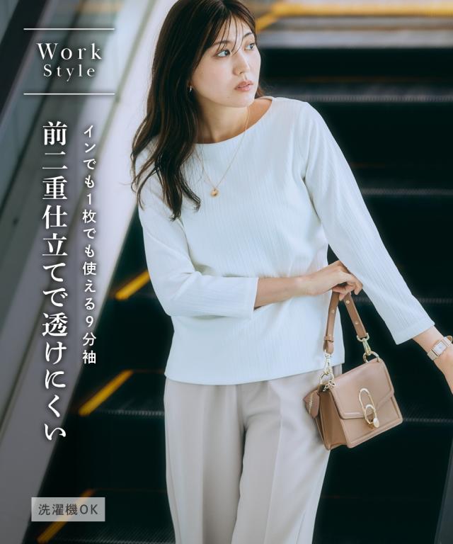 前身頃2枚仕立てで下着の透けをばっちり防止するお悩み解決トップス ■デザイン ・前身頃を2枚仕立てで下着のレース等も響きにくい ・伸縮のあるカットソーで動きやすく、お手入れも簡単にデイリー使いできるのも嬉しいポイント ・ボートネックで鎖骨がきれいにみえるこだわりのシルエット ■素材 伸縮性抜群で肌触りのいいなめらかなランダムリブ素材 ■おすすめのスタイリング すっきりとしたシンプルデザインでスーツやジャケットのインナーなどオフィス使いに最適 〜7days Life Styling〜 仕事の日、休日、イベントの日まで、 働く女性の毎日を商品やコンテンツを通して、 自分らしく快適でいられる“働く服改革”をサポートします。