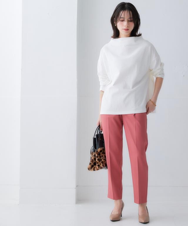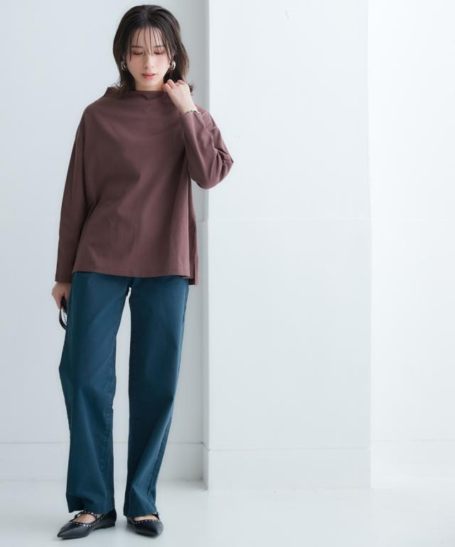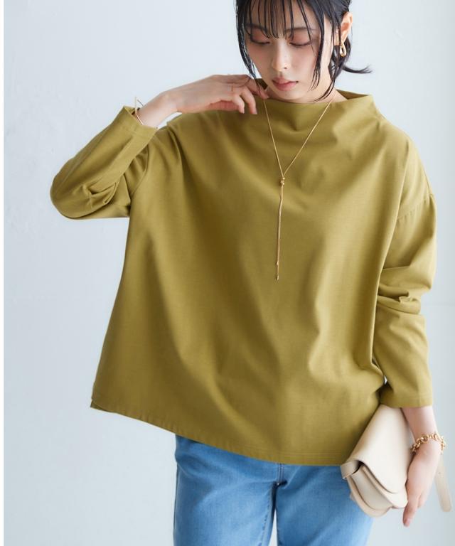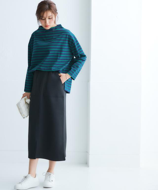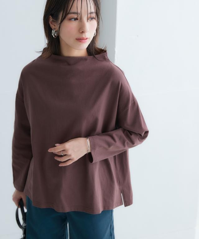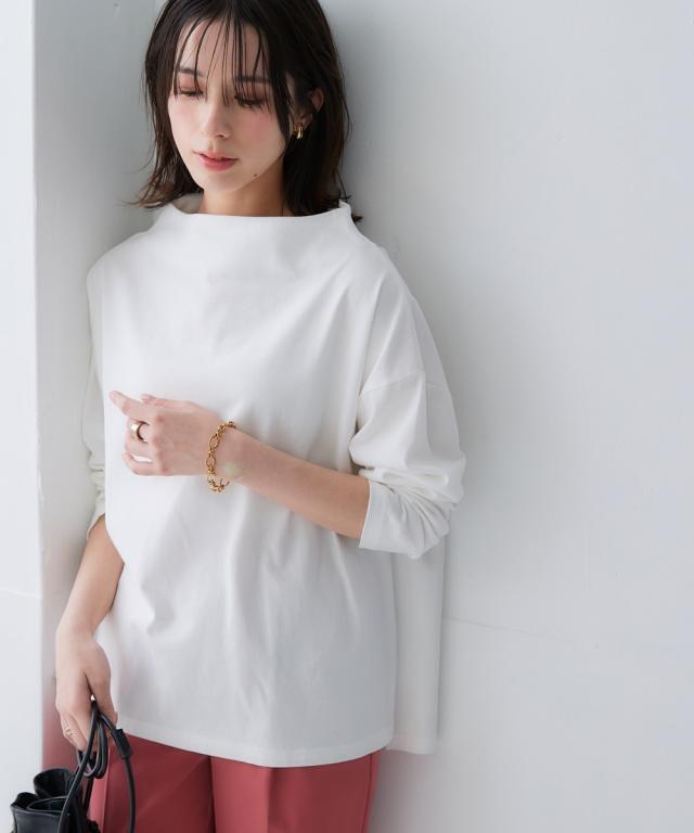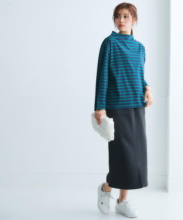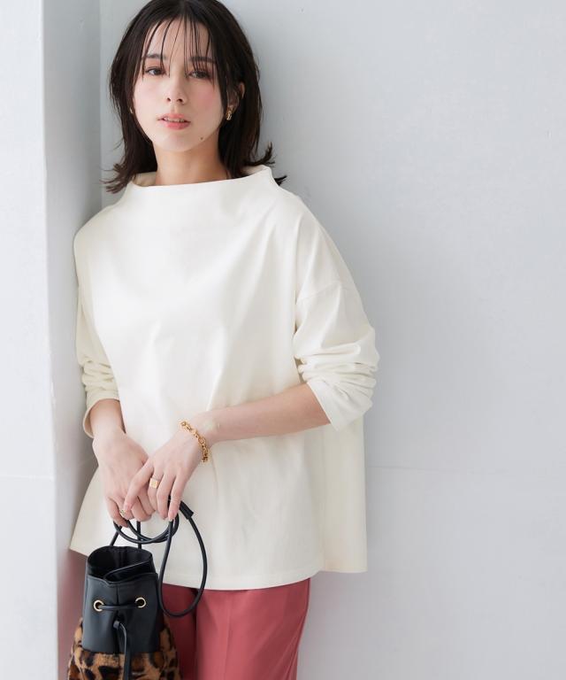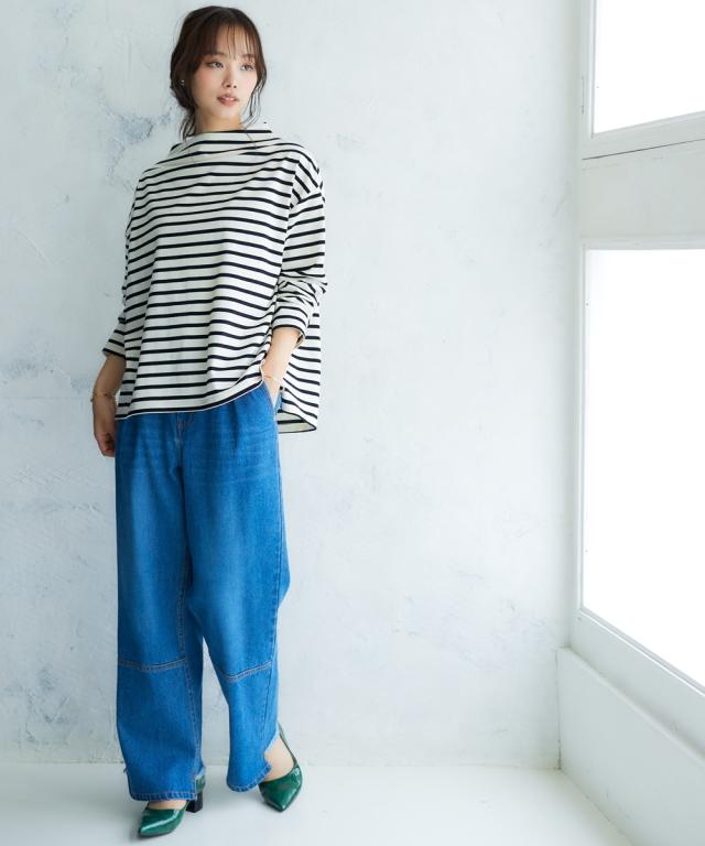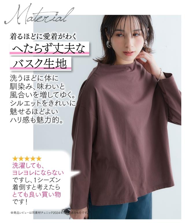 世界中で愛されてきた、歴史あるバスク生地。その魅力は肩ひじ張らずに『自然体で楽しめる』こと。 そんなバスク生地をもっと身近に楽しんでほしい。 そんな想いを込めて、素材に、色に、シルエットにこだわりました。 洗うほどに馴染み、味わいを増していく、ずっと愛用したくったり感も楽しめる1枚です。 あえてゆったりとしたお作りになっています、ぜひ着心地をお楽しみください。 綿100%で素肌にやさしくこれからの季節にぴったりです。 ■デザイン ルーズシルエットに立ち上がったボトルネックが印象的なバスクシャツです。 一見シンプルですが、ネックや袖、全体のシルエットにこだわり、女性らしい華やかさと品の良さを両立させました。 女性らしさの出るドロップショルダーに、ゆったりワイドな身幅のルーズシルエットがトレンド感のある着こなしに。 程よい厚みとハリ感で、体のラインを拾わずシルエットを美しく魅せてくれます。 やや肉厚のコットン生地はしっかりと目の詰まった長く愛用できる素材感なので、デイリーユースにぴったりです。 サイドスリット入りなのでパンツにもスカートにも合わせやすい ■素材 シルエットをきれいに魅せる、程よいハリ感が魅力のバ
