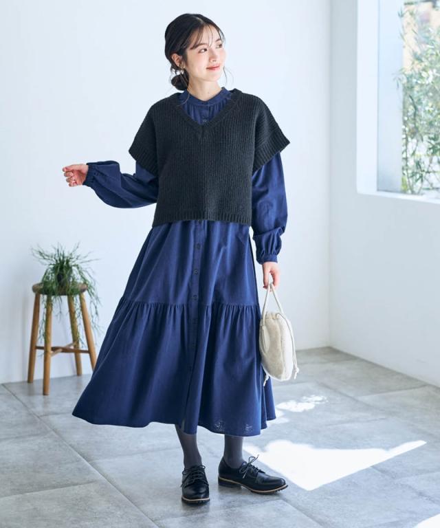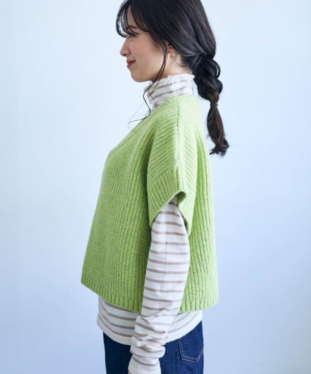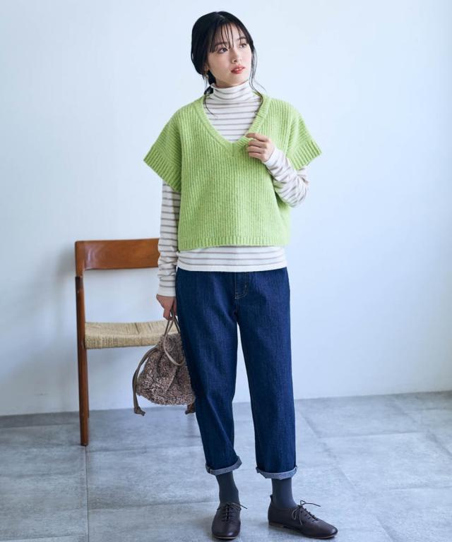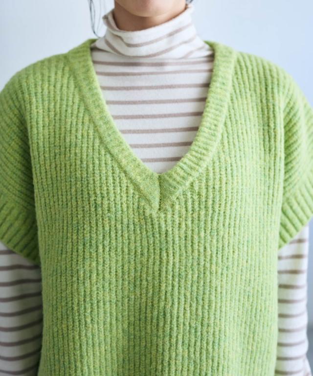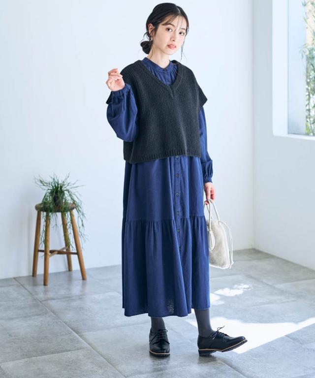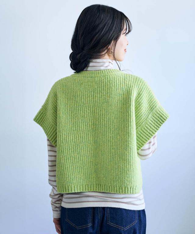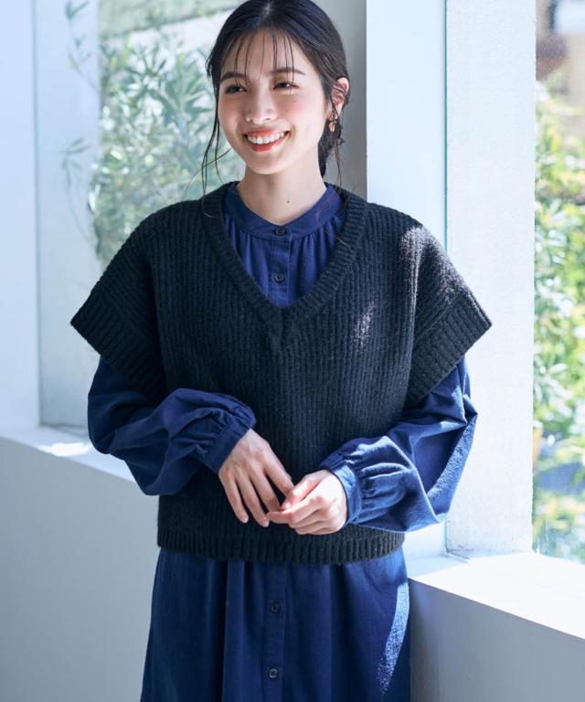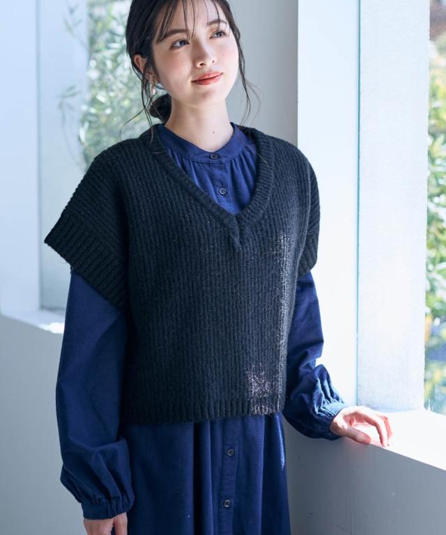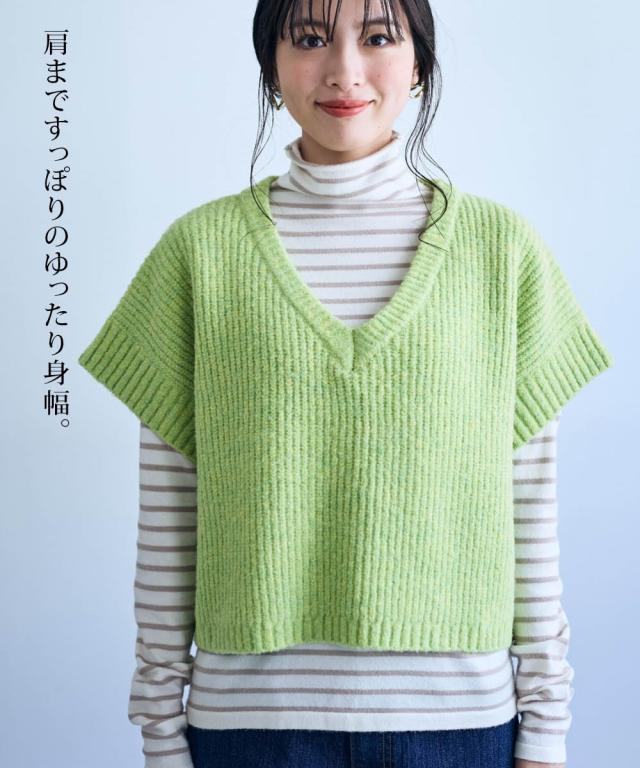 ふんわり優しい着心地が魅力 Vネックショート丈ニットベスト ■デザイン カジュアルだけどどこか大人っぽい雰囲気漂うVネックショート丈ニットベスト。ゆったりとしたシルエットで体型カバー効果も期待できます。お手持ちのアイテムに合わせて今風のコーデを楽しんで ■素材 ローゲージの柔らかな風合いが、優しい着心地を実現しました。 ■おすすめのスタイリング カジュアルなTシャツやブラウスの上、ワンピースの上にも羽織って、着回しを楽しんでください。 〜 ナチュラル&カジュアル なオトナのデイリーウェア 豊かなライフスタイルと心地の良い毎日を… 肌ざわりや着心地の良さはもちろん、シンプルさの中に自分らしさをプラスしたリラックスできるスタイルのご提案 〜