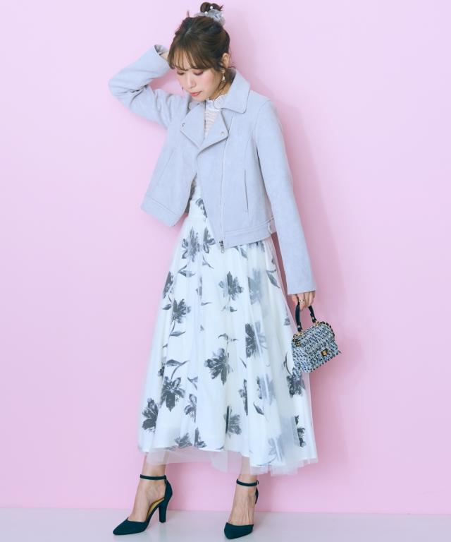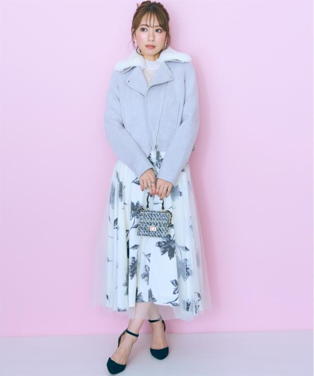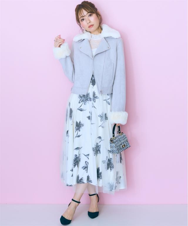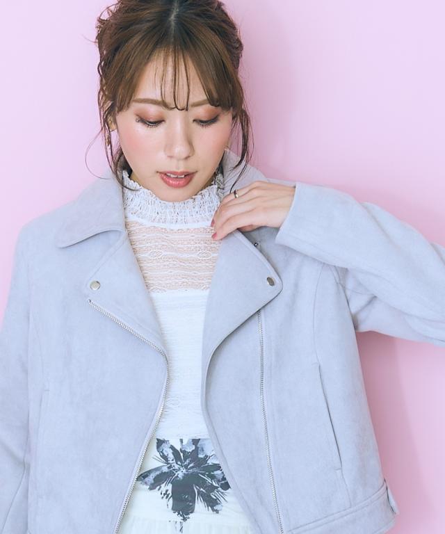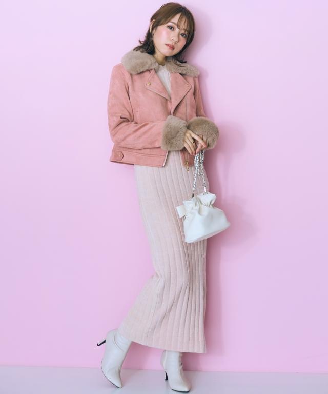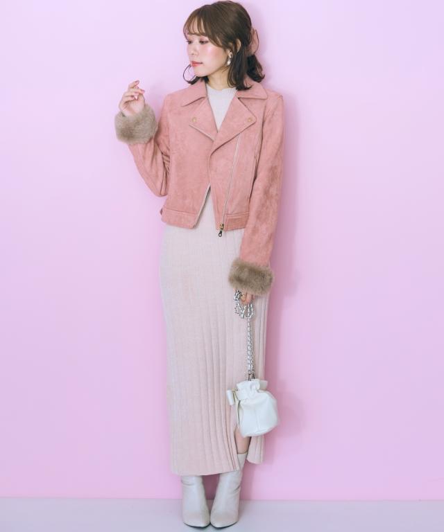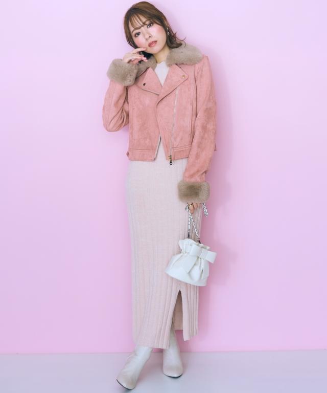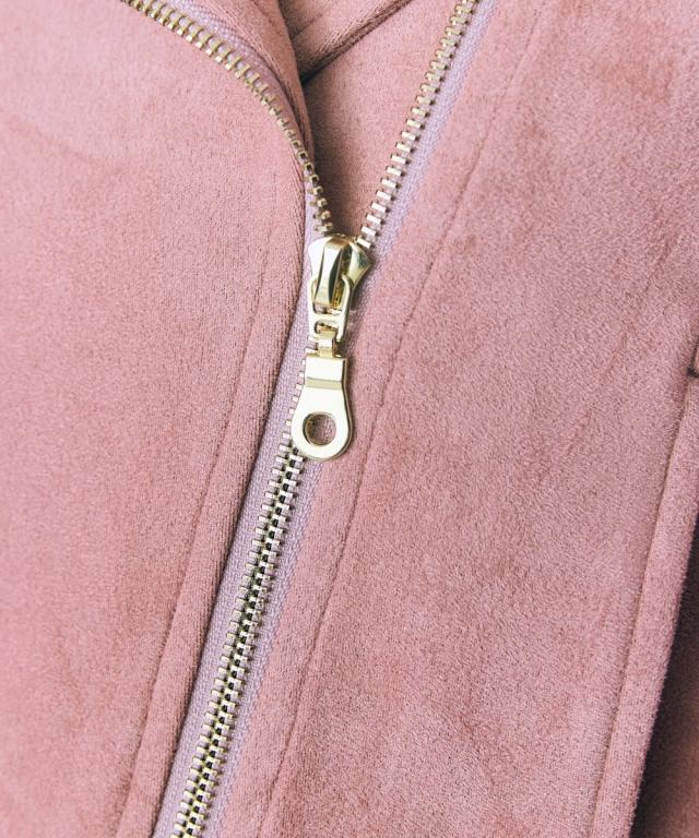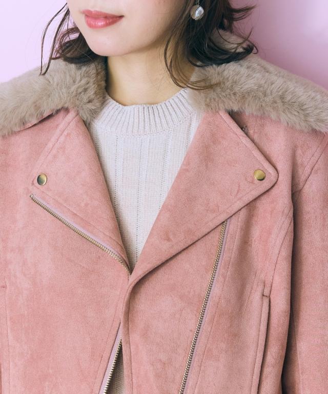 昨年人気だったライダースジャケットがリニューアル 。さらにかわいくなって新登場です ■デザイン 人気のラベンダーに加えて、ピンクが新色として登場 。ボリュームのあるファーの配色デザインがかわいいジャケットです。ラベンダーはシルバー・ピンクはゴールドと、色ごとにZIPやボタンの色が異なります。衿・袖口のファーは取り外しできるため、秋〜春まで長くお使いいただけます。 ■素材 日常使いしやすい、合繊のフェイクスエード生地を使用しました。 ■おすすめのスタイリング ワンピースにもおすすめの丈感です。レースデザイントップスとミディ丈のチェックスカートとのコーデもおすすめ。